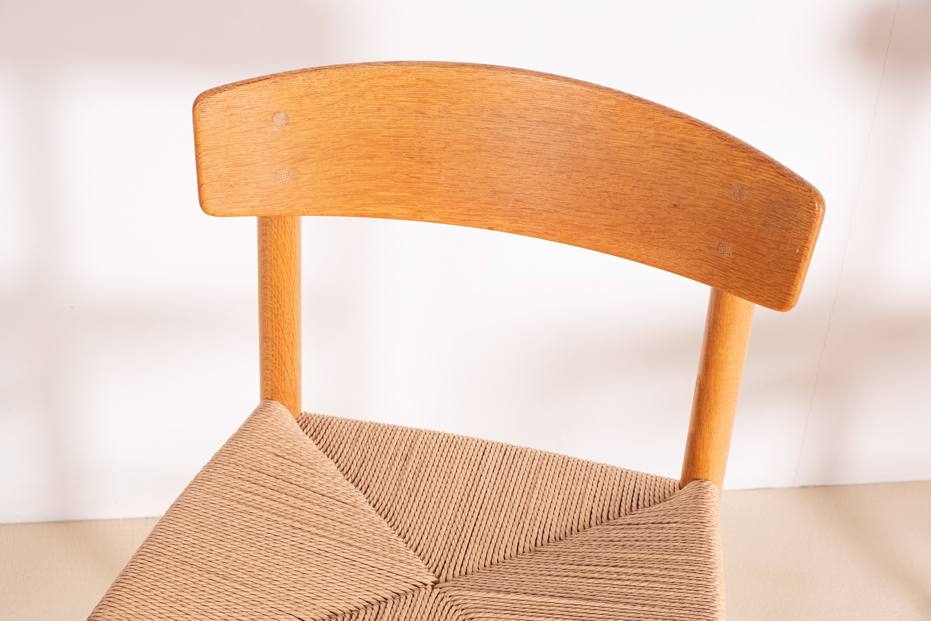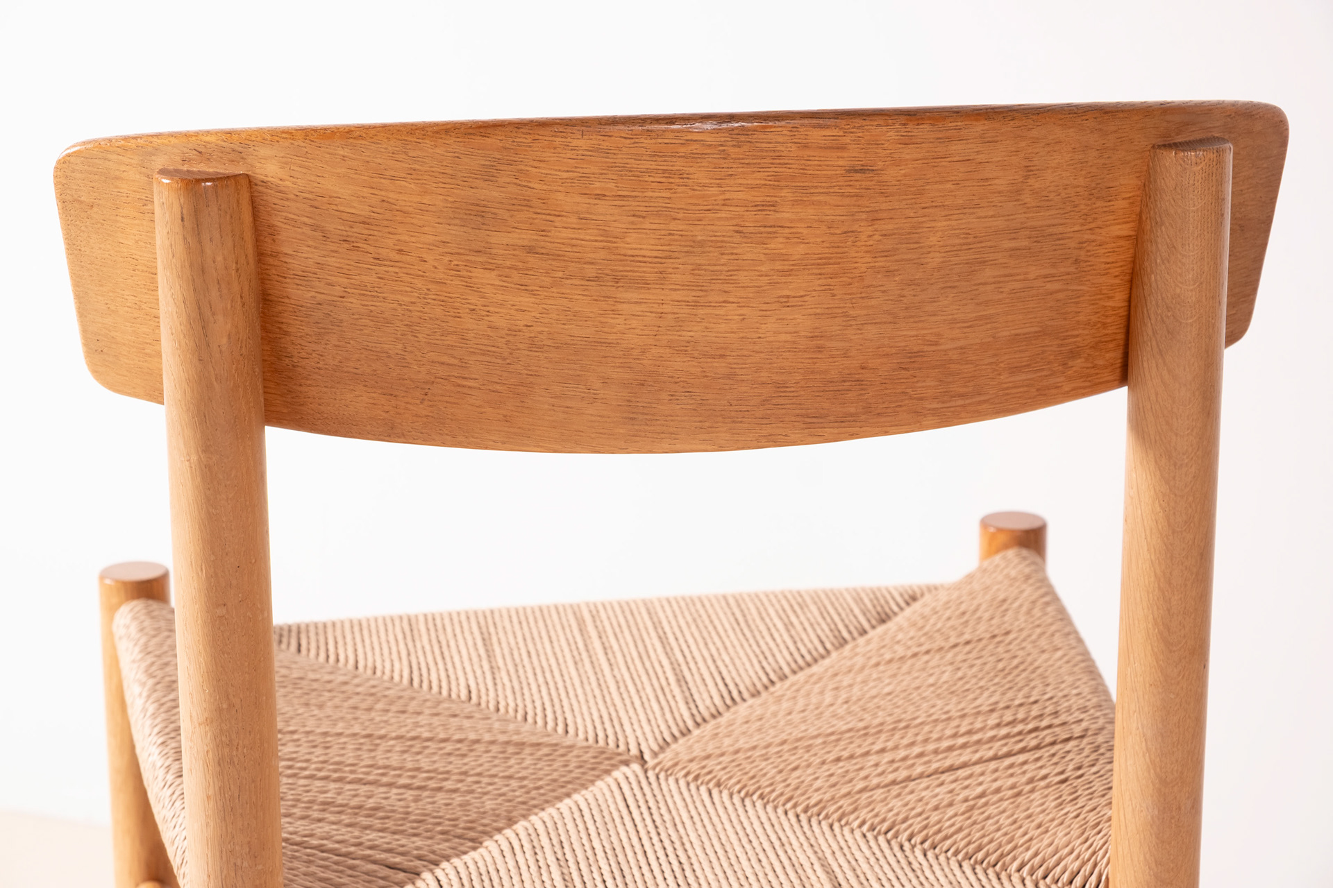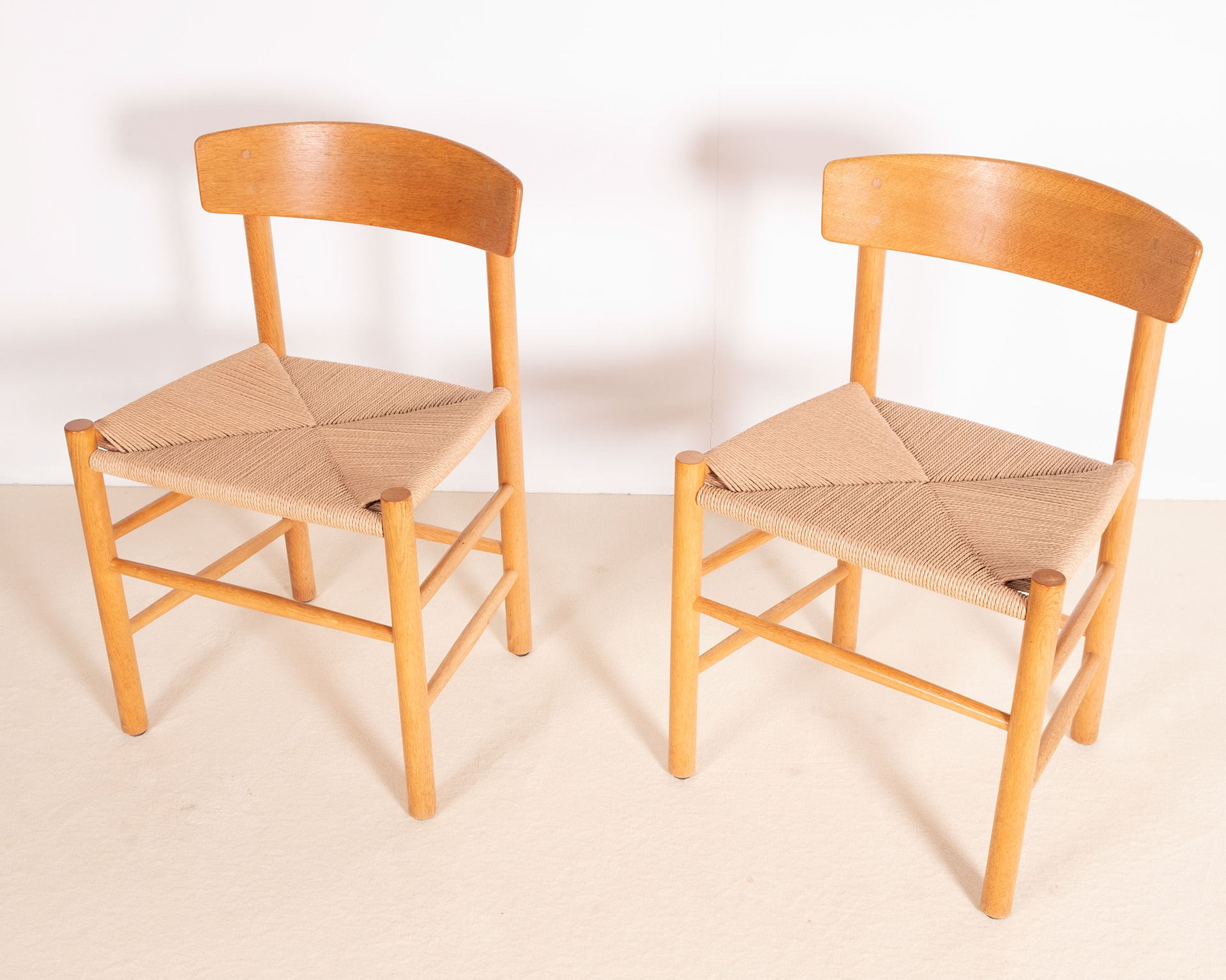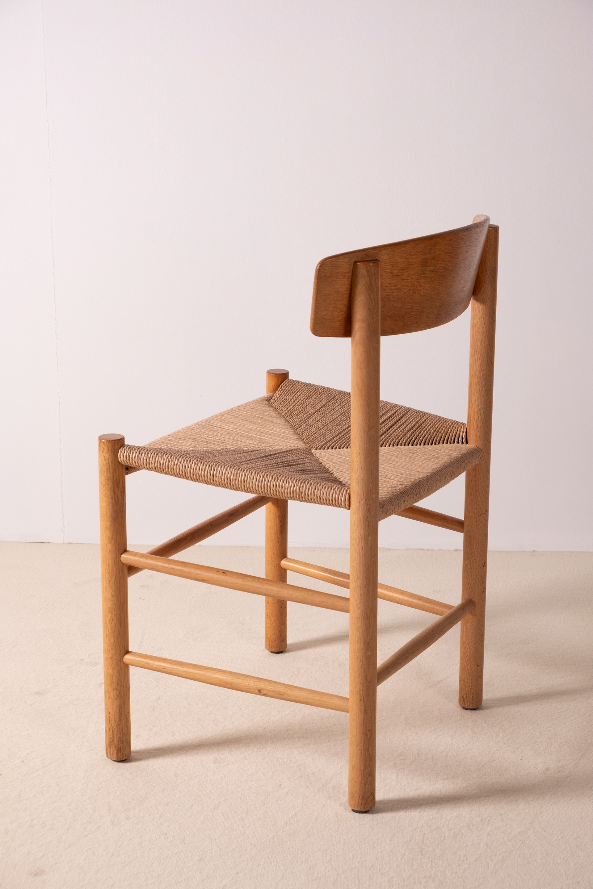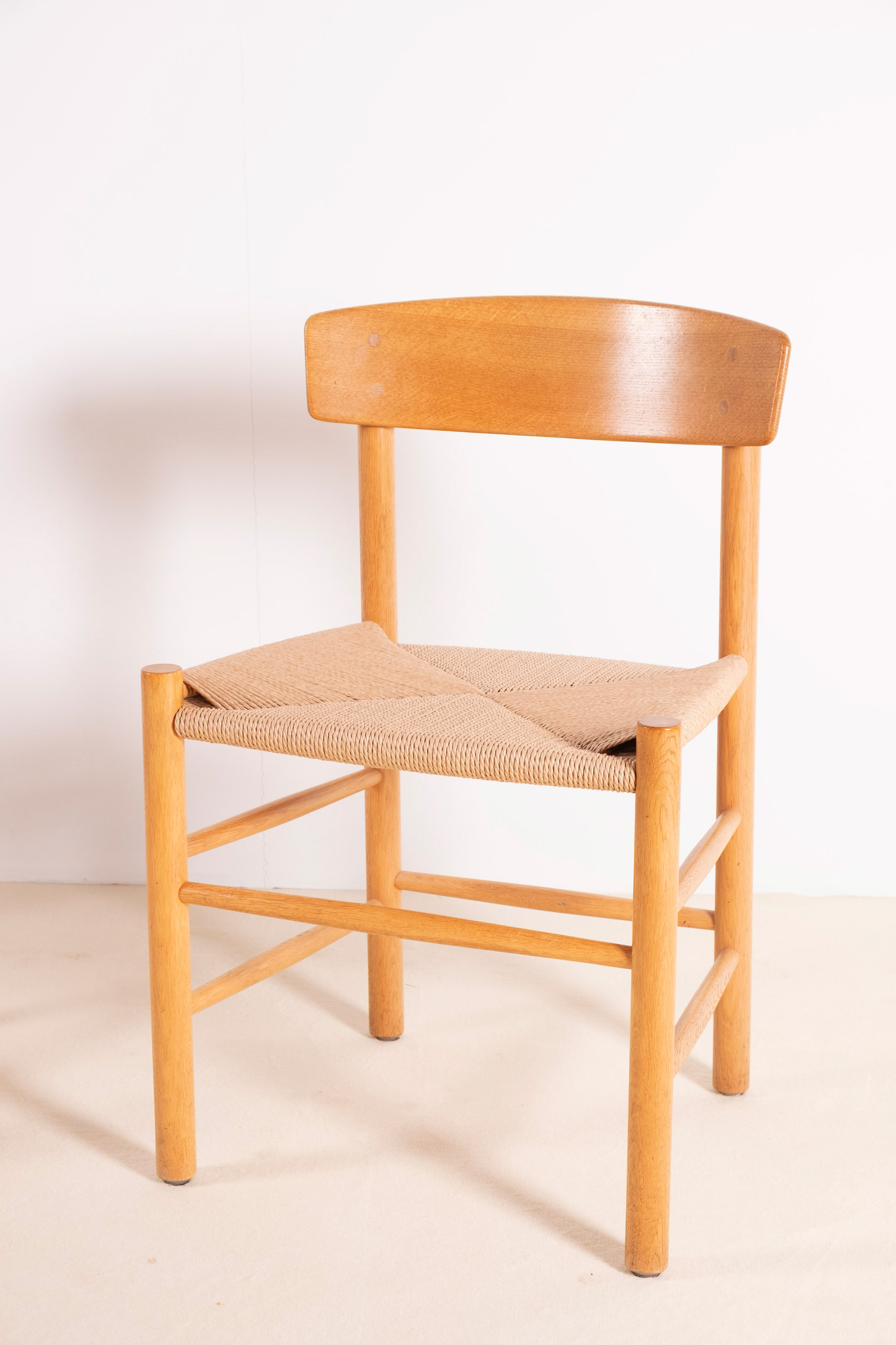 Set of four J39 Dining Chairs by Børge Mogensen. Designed in 1947 by Børge Mogensen for FDB Møbler, Denmark. This set was produced in 1981 and is crafted in solid oak with papercord seats. The iconic J39, also known as the “People’s Chair,” exemplifies Mogensen’s dedication to functional craftsmanship and honest materials—combining Shaker-inspired simplicity with timeless Danish modern design. The chairs are in good vintage condition with light traces of use in accordance with the age of the chairs. All chairs have been freshly rewoven in our own workshop.