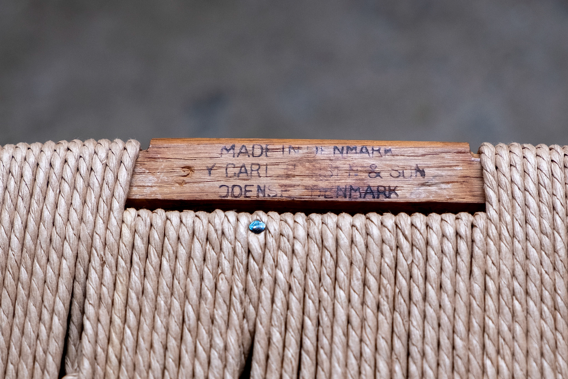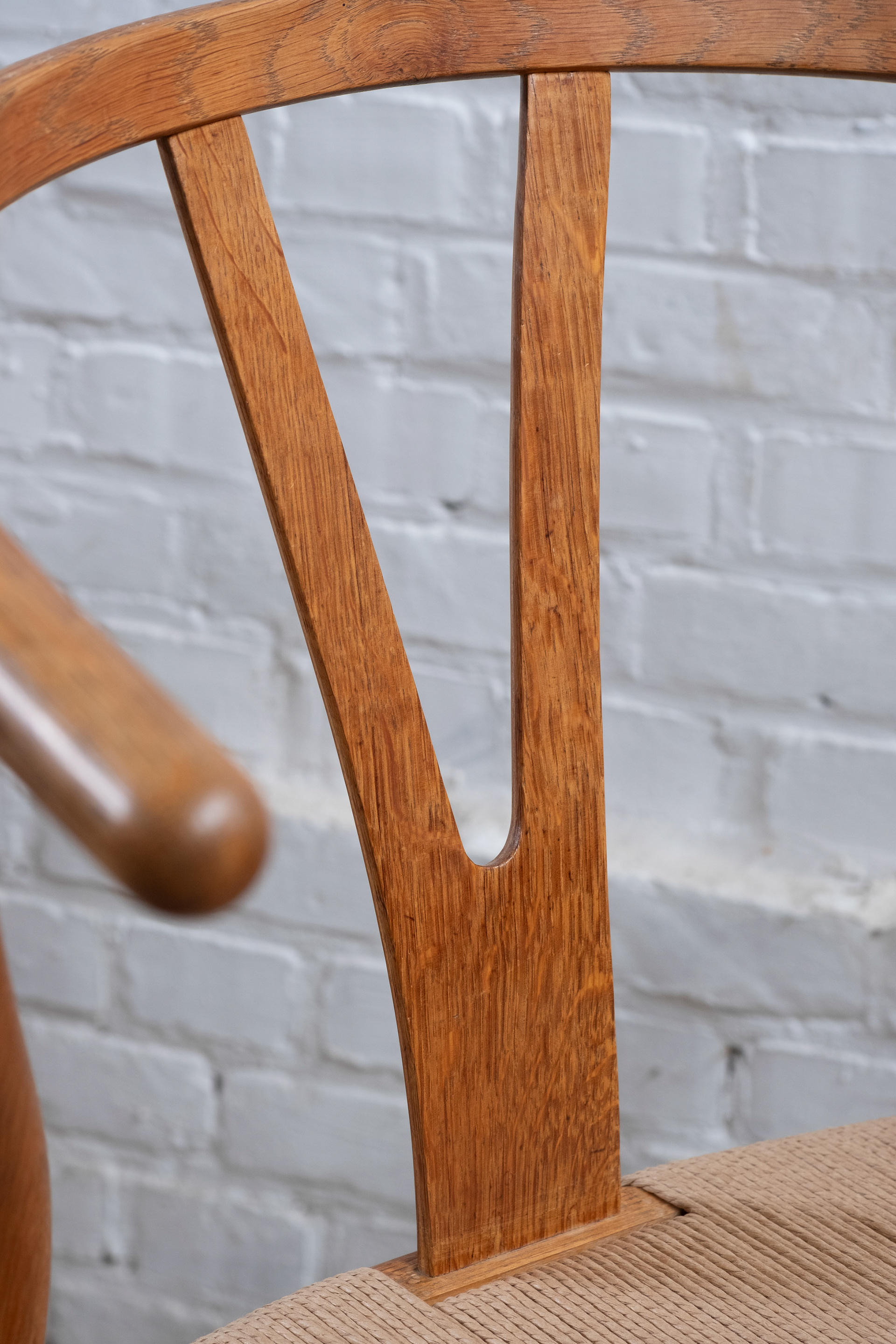 A rare and early set of 4 oak CH-24 Wishbone chairs by Hans J. Wegner by Carl Hansen & Sons, produced in the 1960s. Two of the chairs are stamped with makers mark underneath the seat. The chairs are in great condition and have new danish papercord seats.