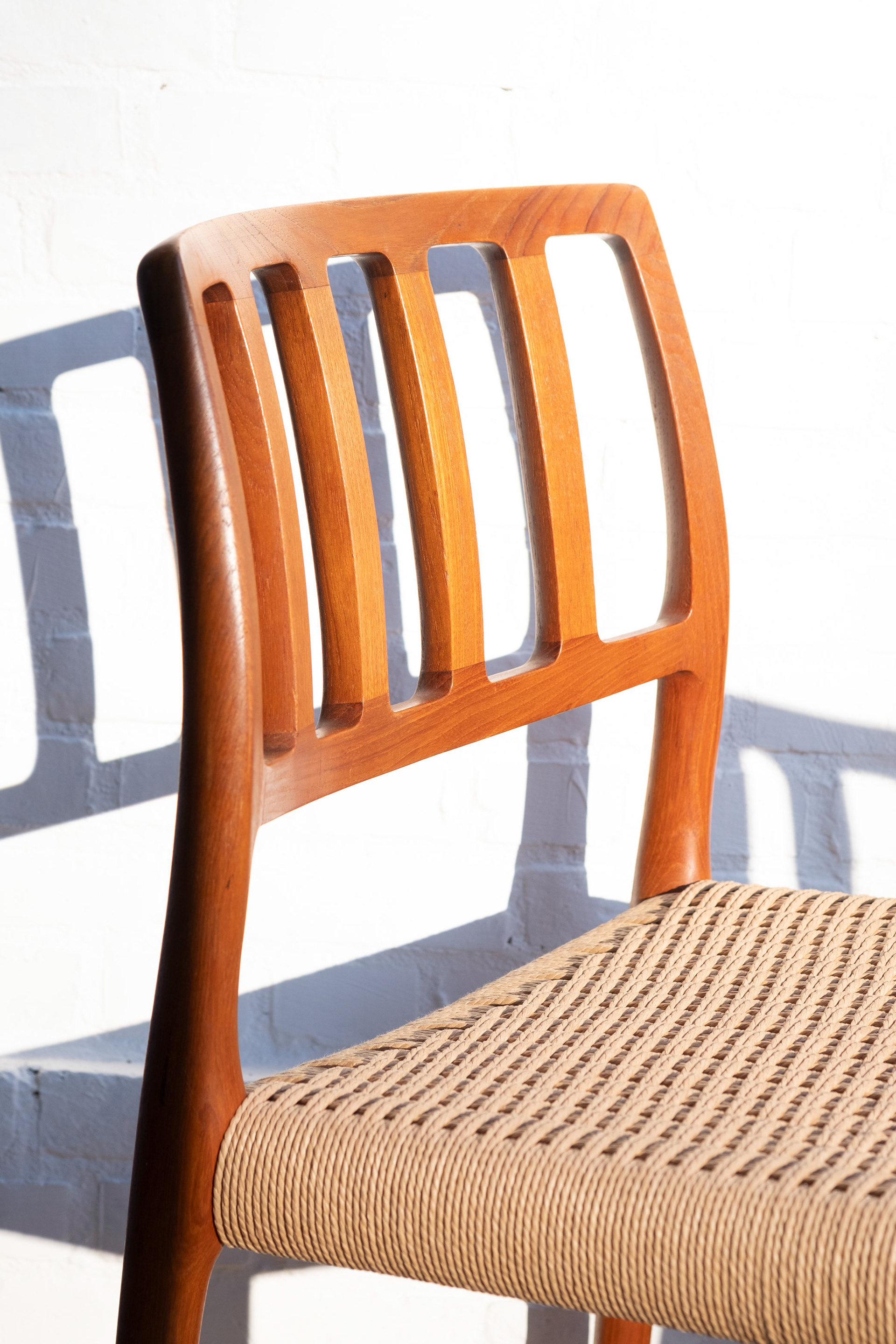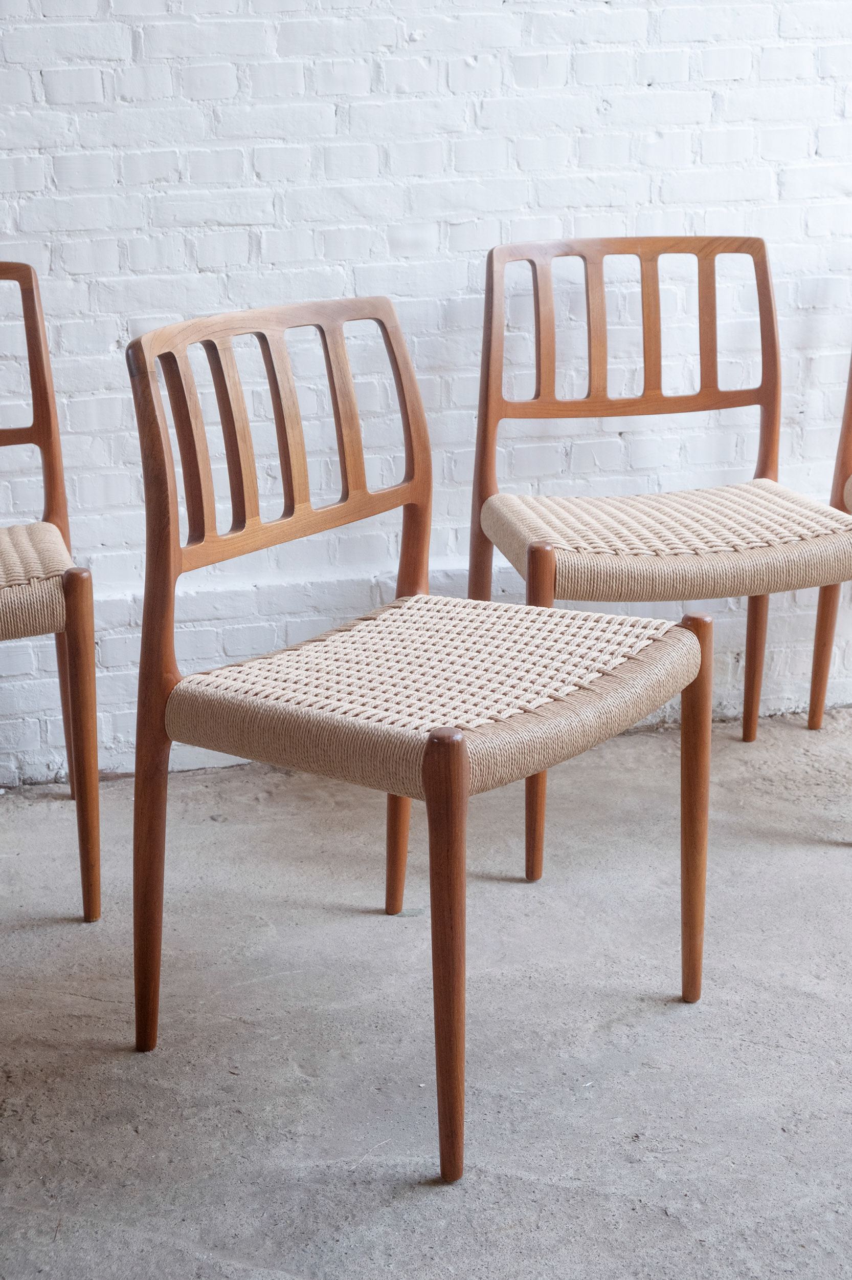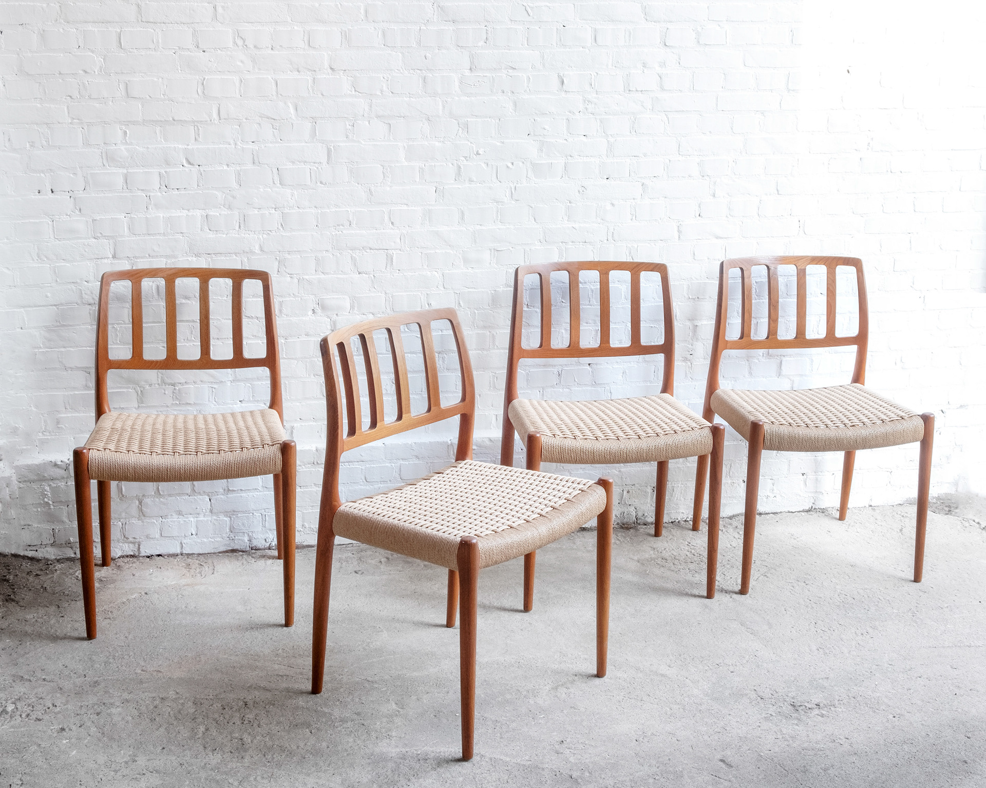Set of 4 Niels Otto Møller chairs, Model 83 in teak. Made in Denmark in the 1960s by J.L. Møller Møbelfabrik. Truly beautiful and comfortable design. New papercord seats.