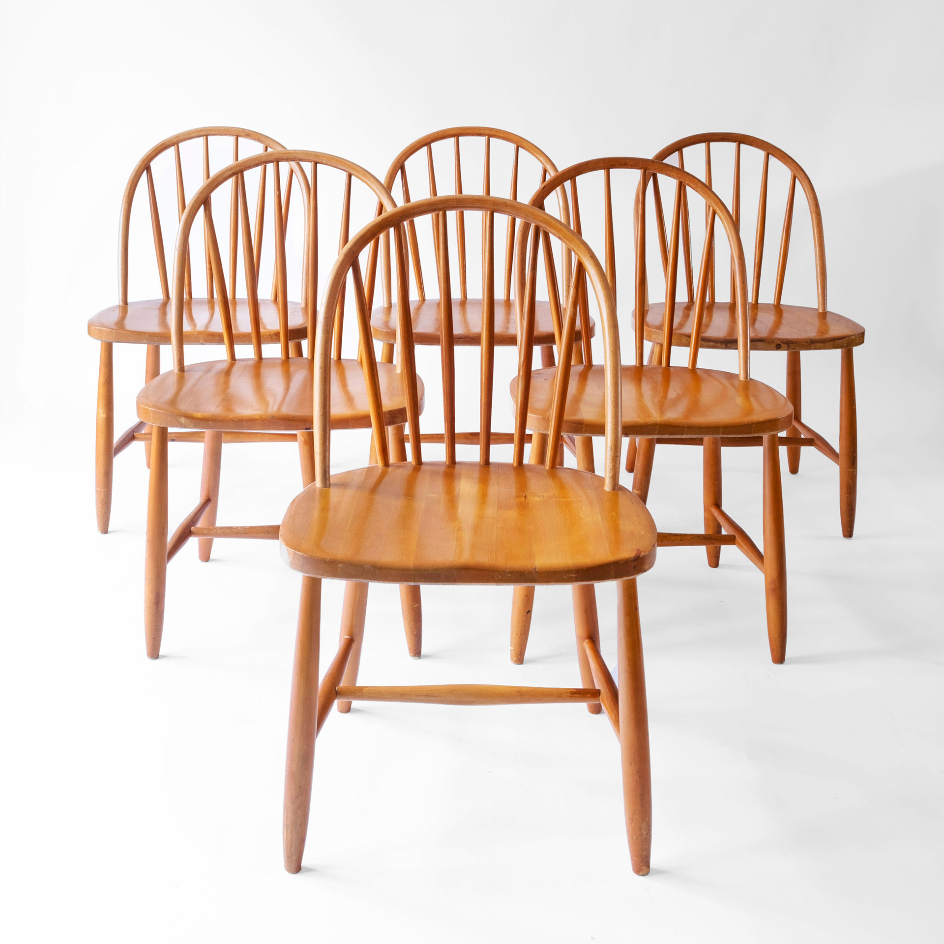 Set van 6 eetkamerstoelen van Børge Mogensen, model J4 geproduceerd door FDB Møbler in de jaren 1950. De stoel is ontworpen in 1944 en geïnspireerd op de Windsor stoelen.