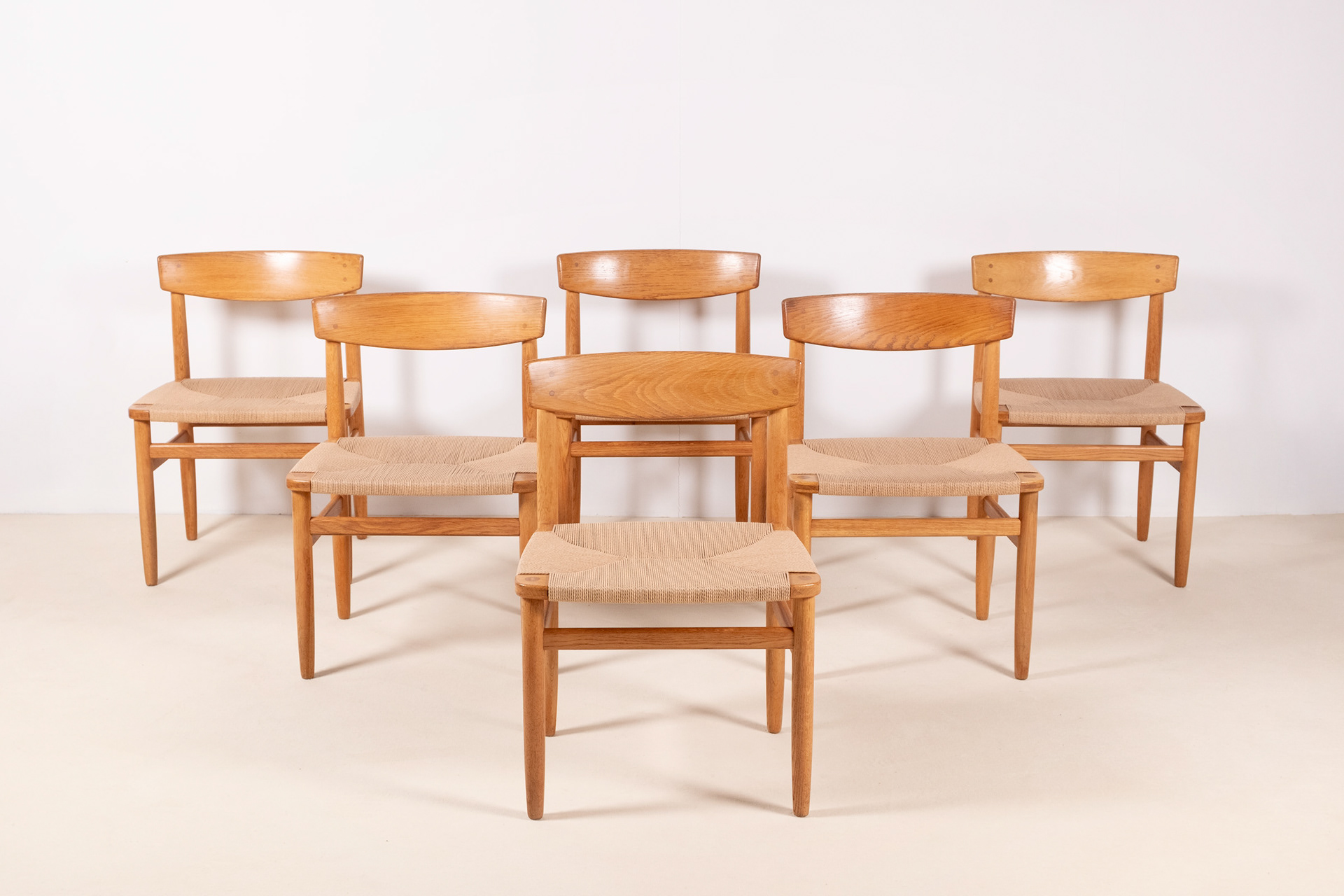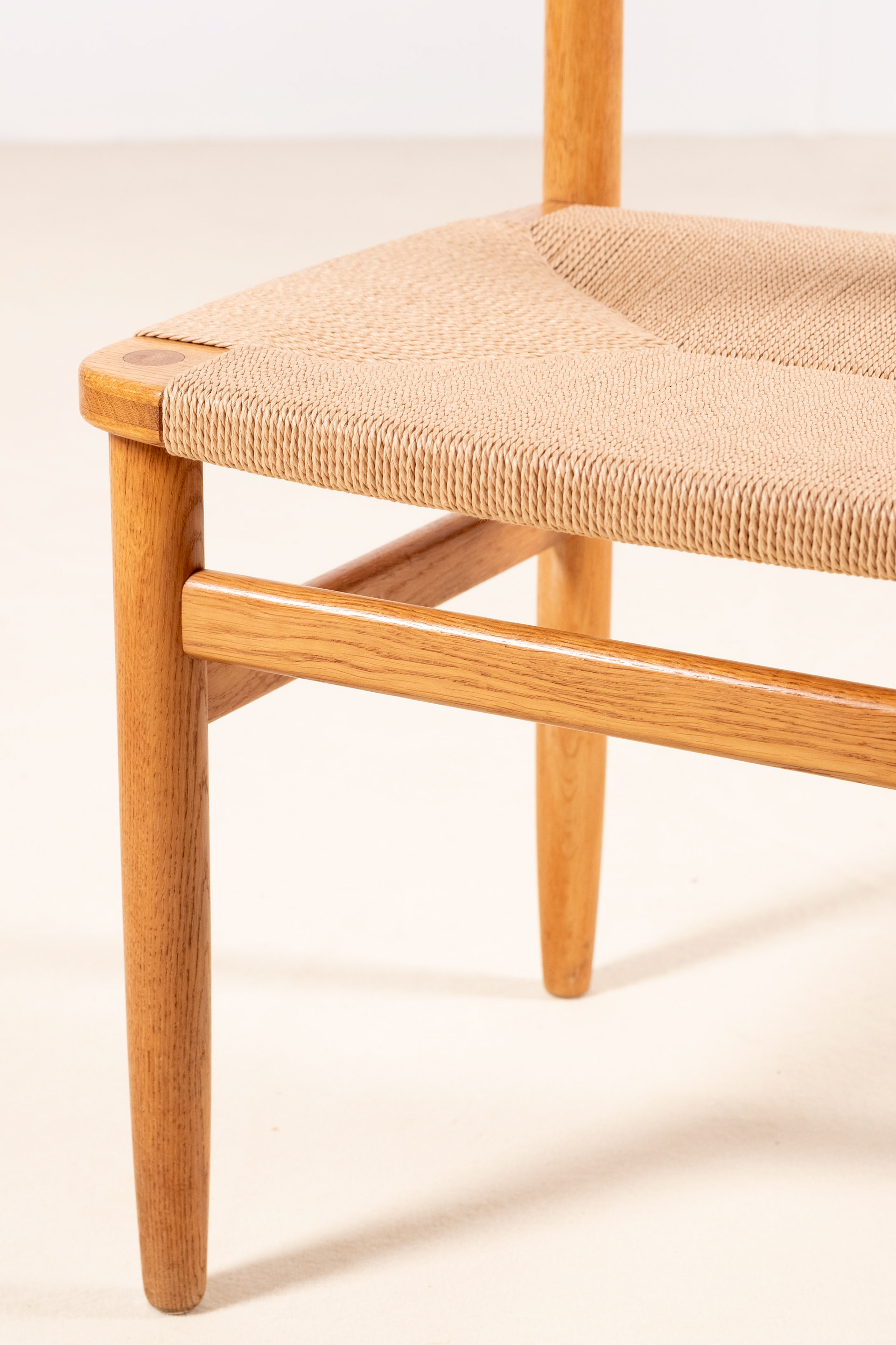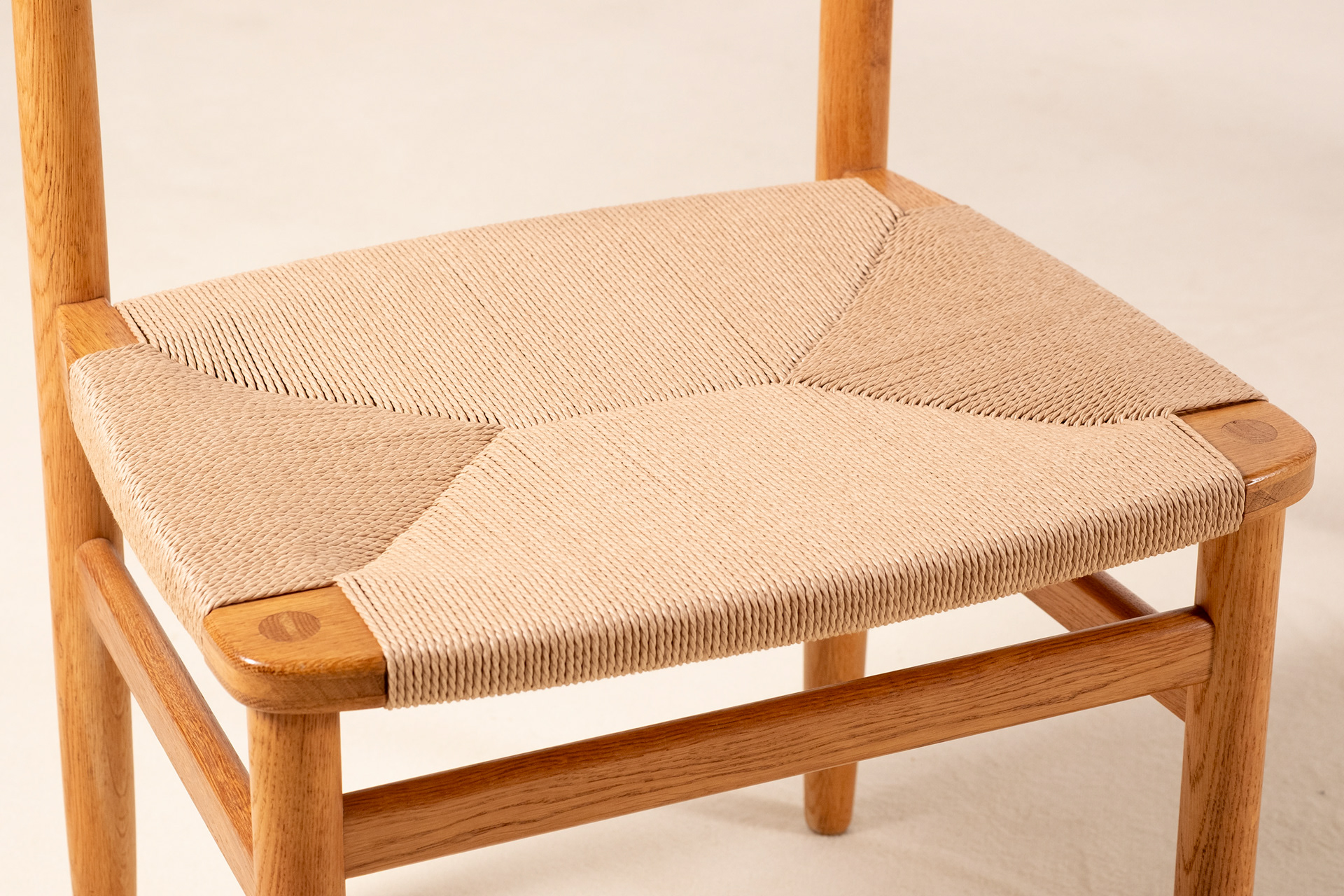 Early set of 6 Øresund model 537 dining chairs in oak and rush seats, designed by Børge Mogensen. Produced in Sweden by Karl Andersson & Söner.