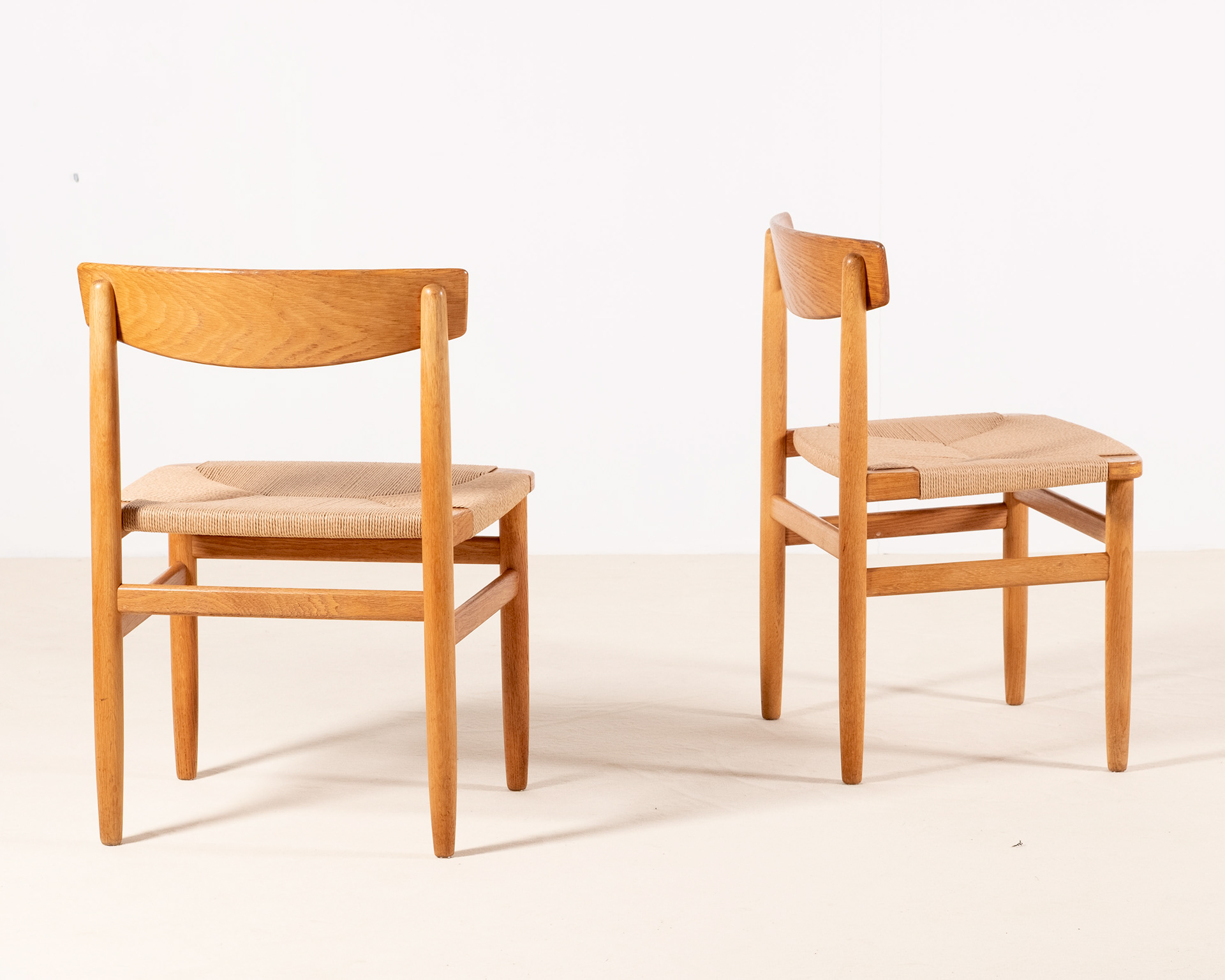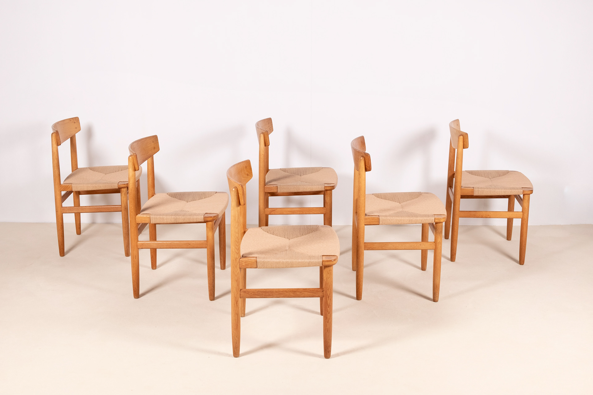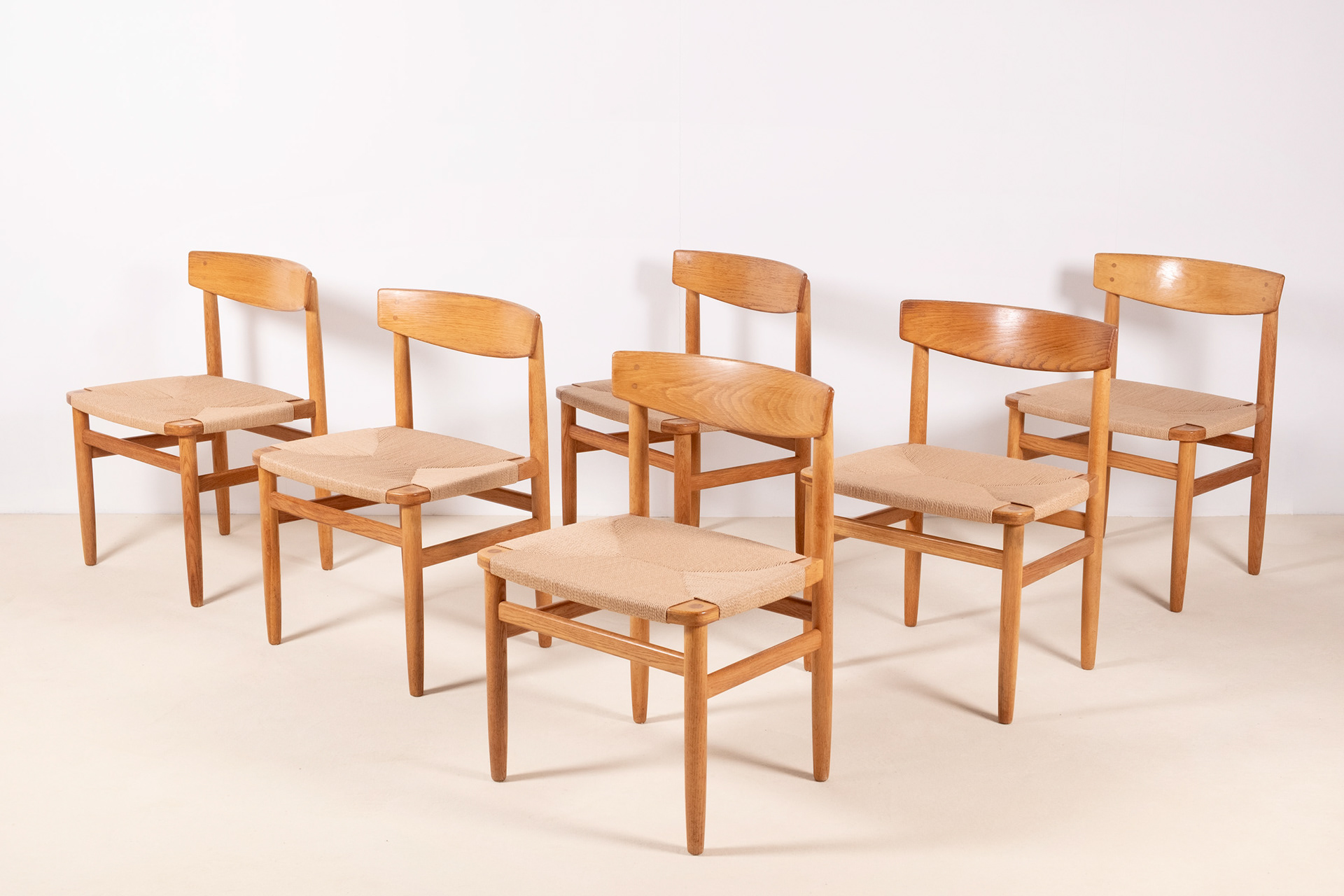 Early set of 6 Øresund model 537 dining chairs in oak and rush seats, designed by Børge Mogensen. Produced in Sweden by Karl Andersson & Söner.
