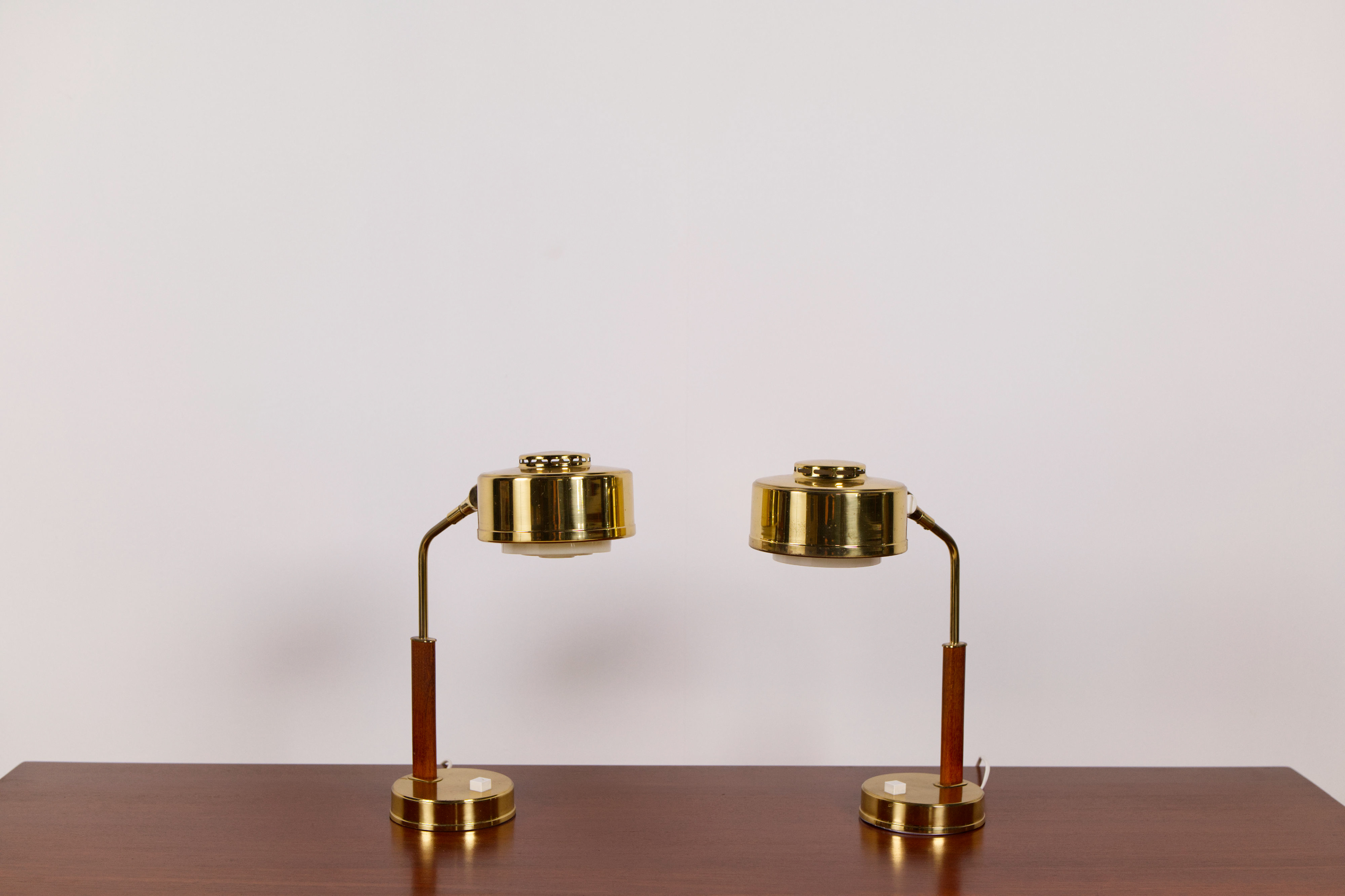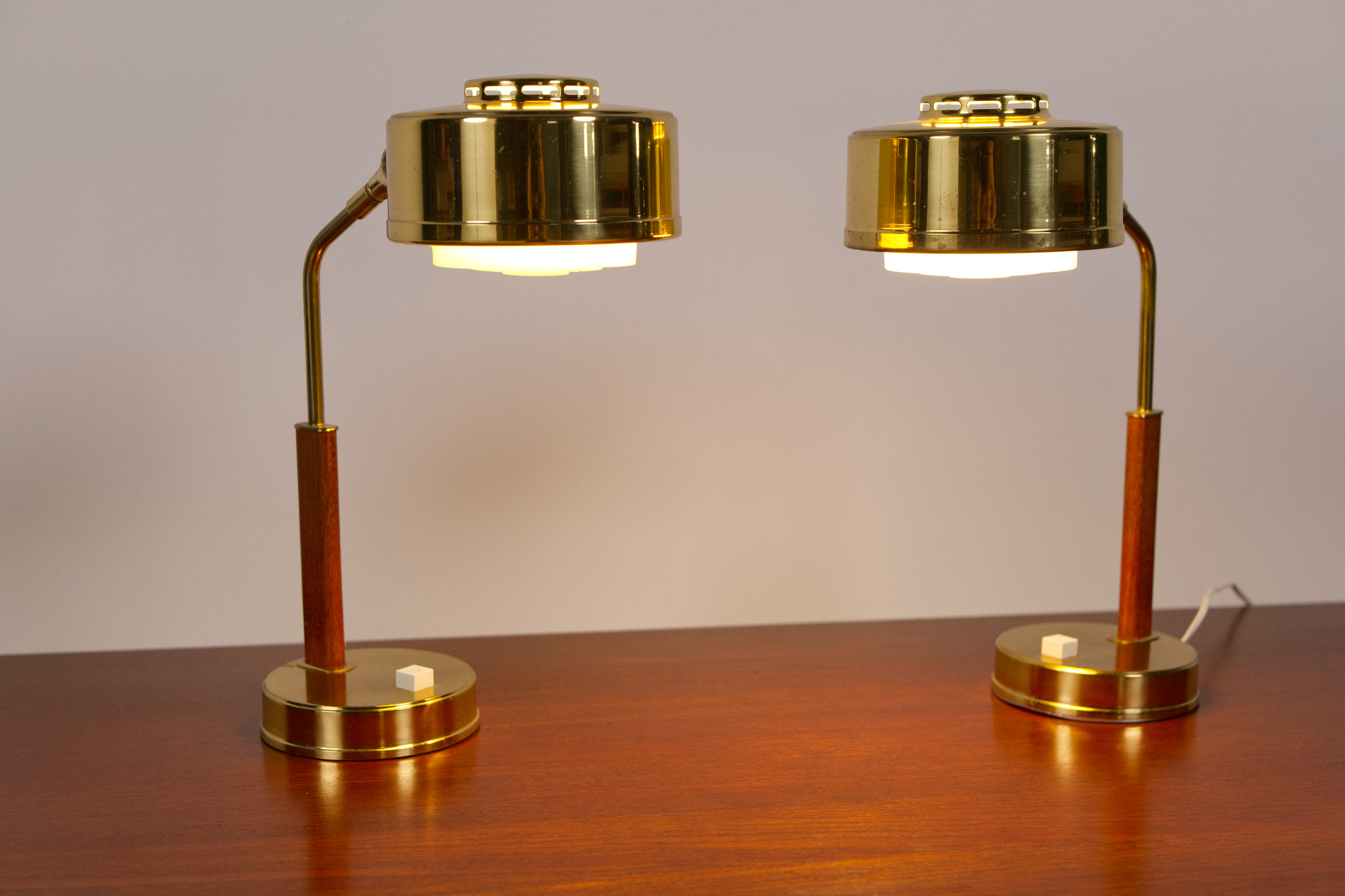 Pair of Brass and Teak Table Lamps by BJS Skellefteå, Sweden, 1960s