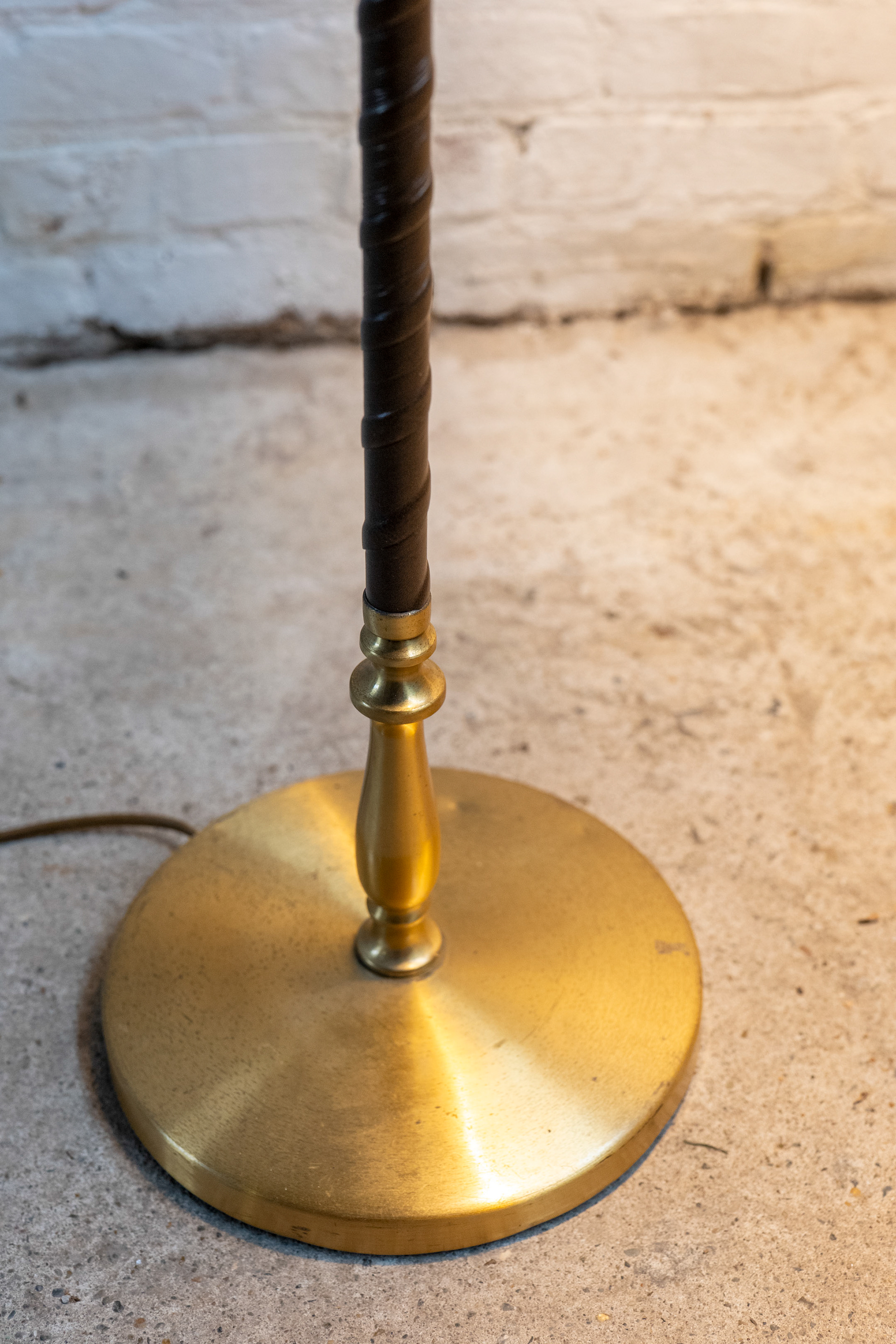 Floor lamp Model "7402" by Einar Bäckström captures the sophisticated elegance of mid-century Swedish design. Known for his distinctive blend of refined craftsmanship and thoughtful material use, Bäckström delivers an effortlessly stylish lighting solution in this model. A stunning combination of brass and leather, this lamp epitomises Scandinavian luxury and meticulous attention to detail; a true testament to Einar Bäckström's talent and the mid-century Swedish aesthetic.