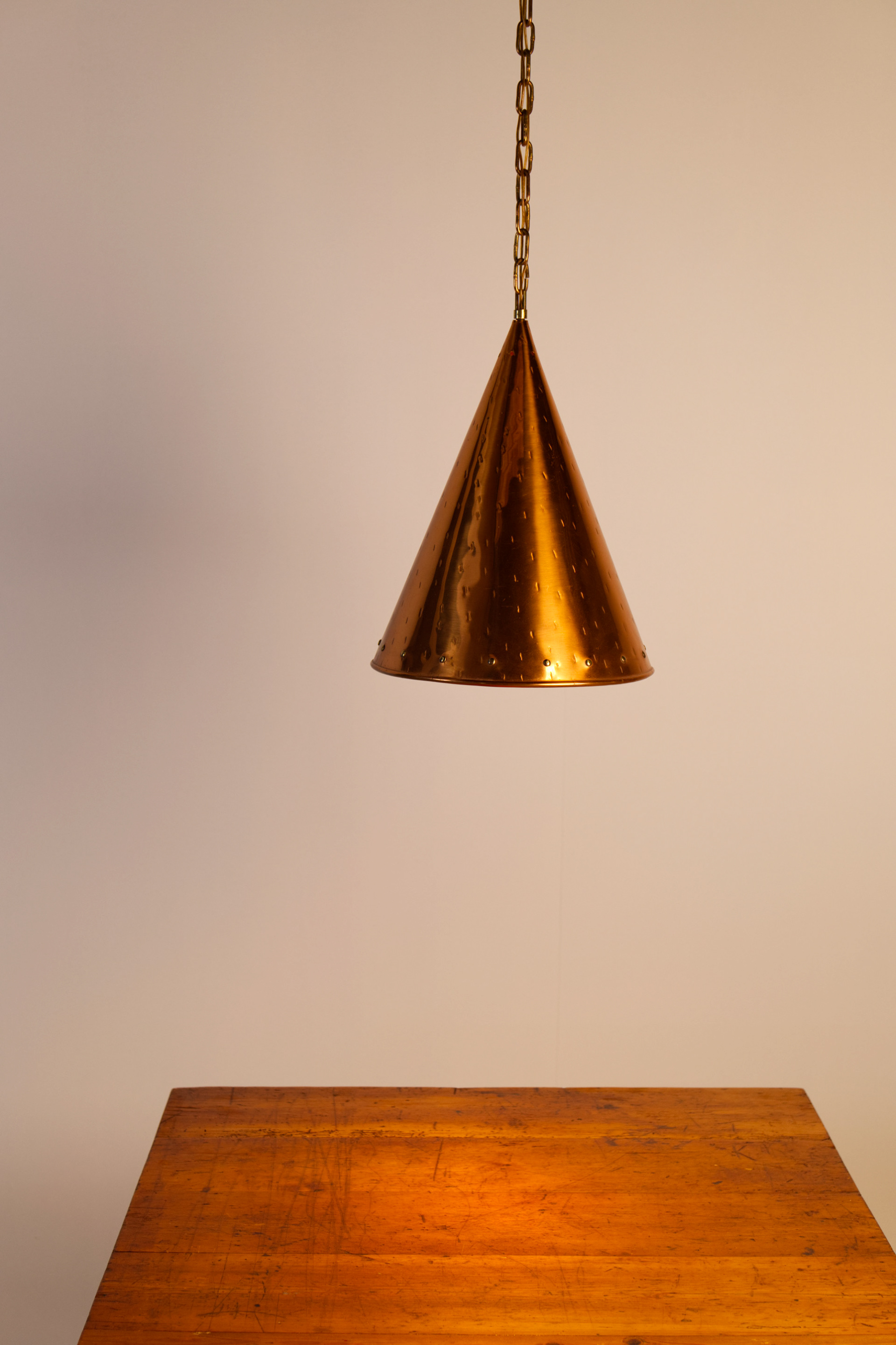 Large Copper Cone Pendant Lamp by Th. Valentiner – Denmark, 1960s