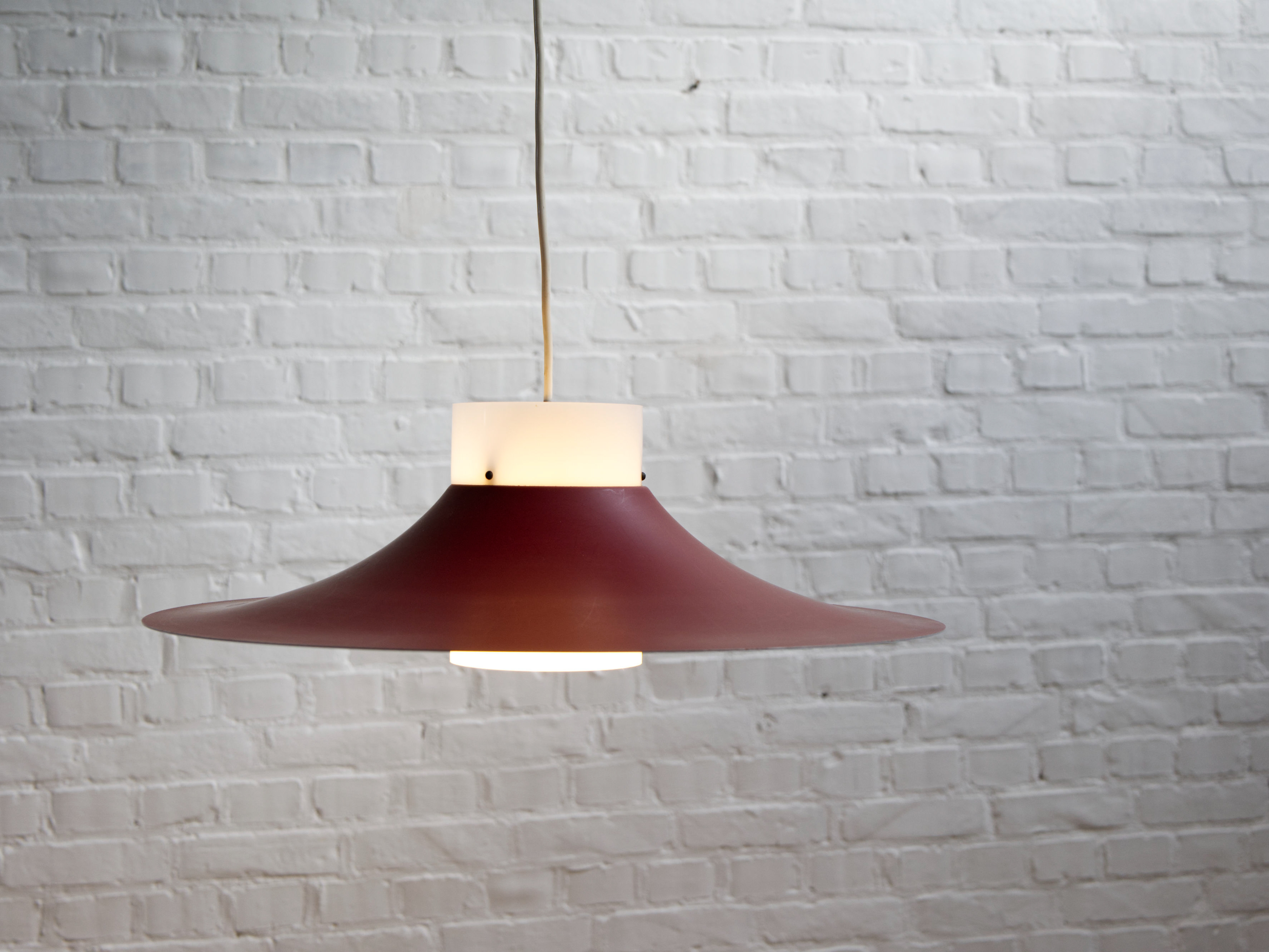 Red Metal And Opal Plastic Pendant Lamp, 1960'S