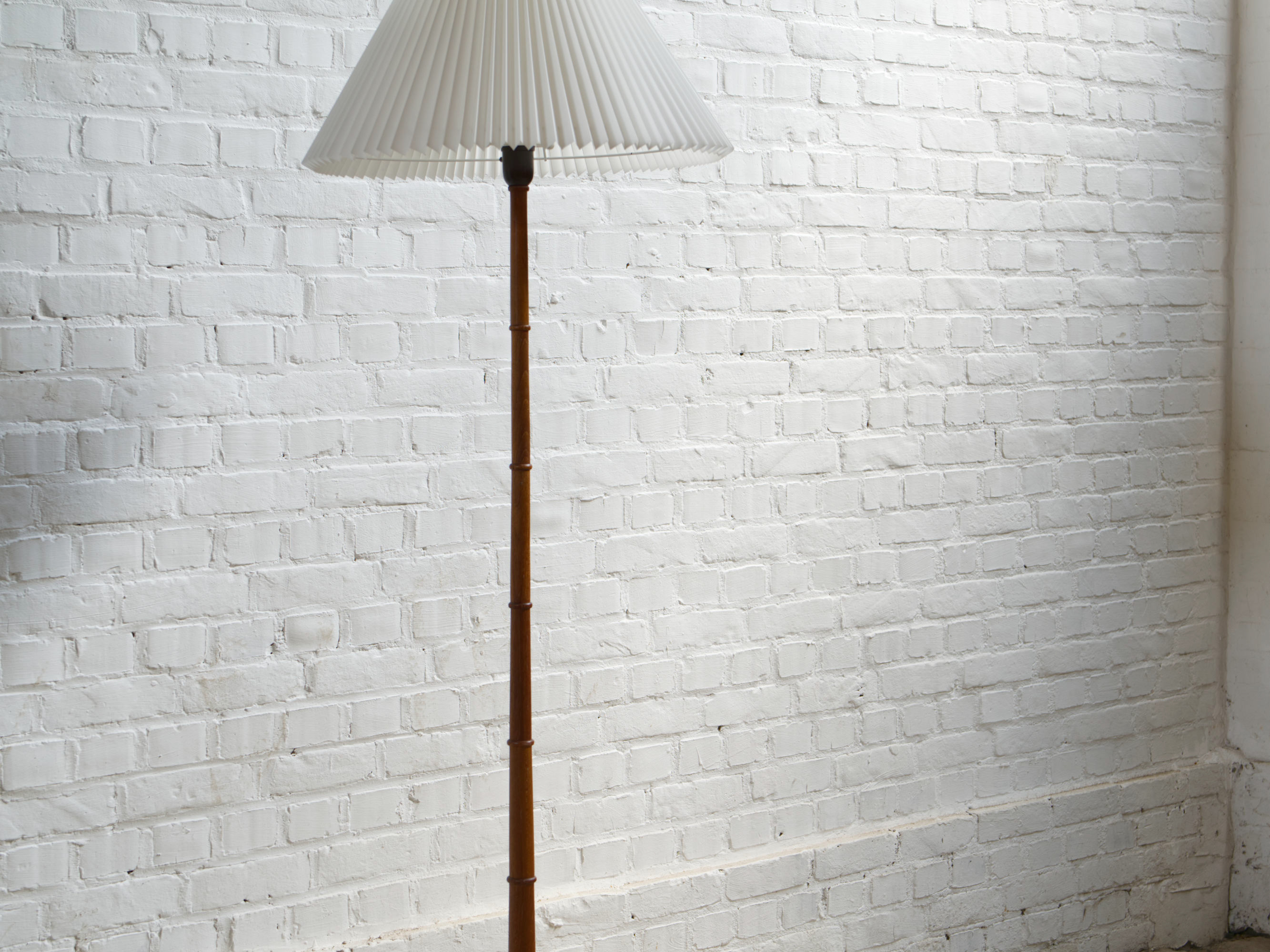 Teak floor lamp with a pleated lampshade, Denmark 1950s