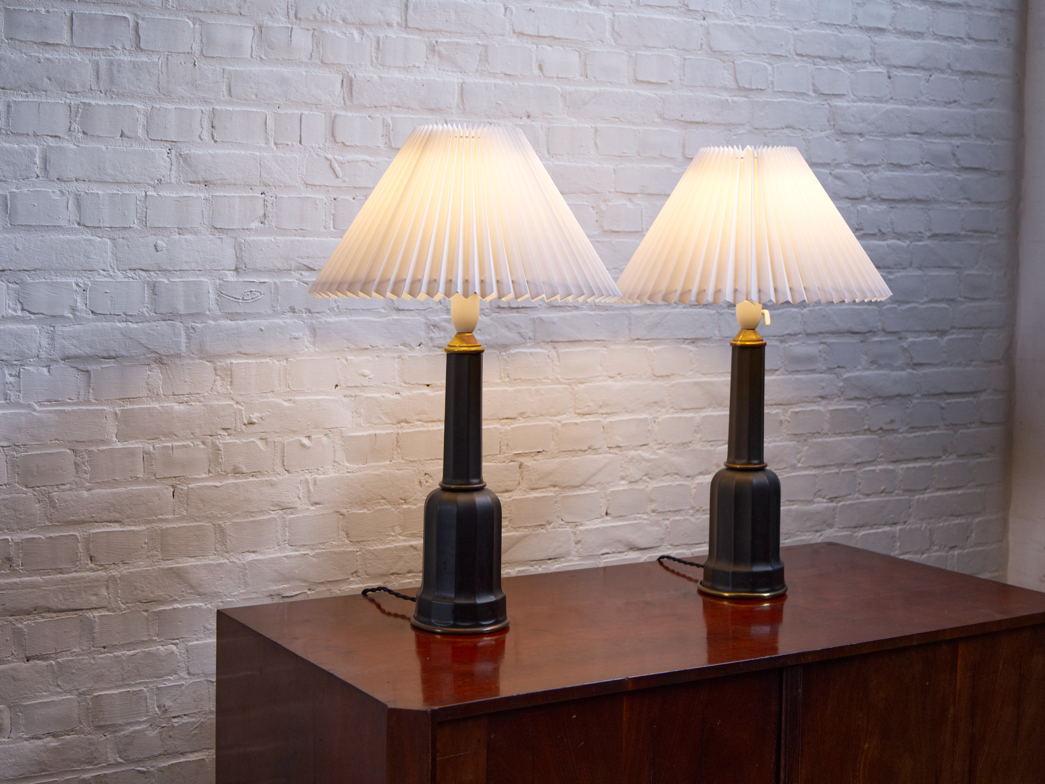 Pair of black porcelain and brass 'Heiberg' table lamps