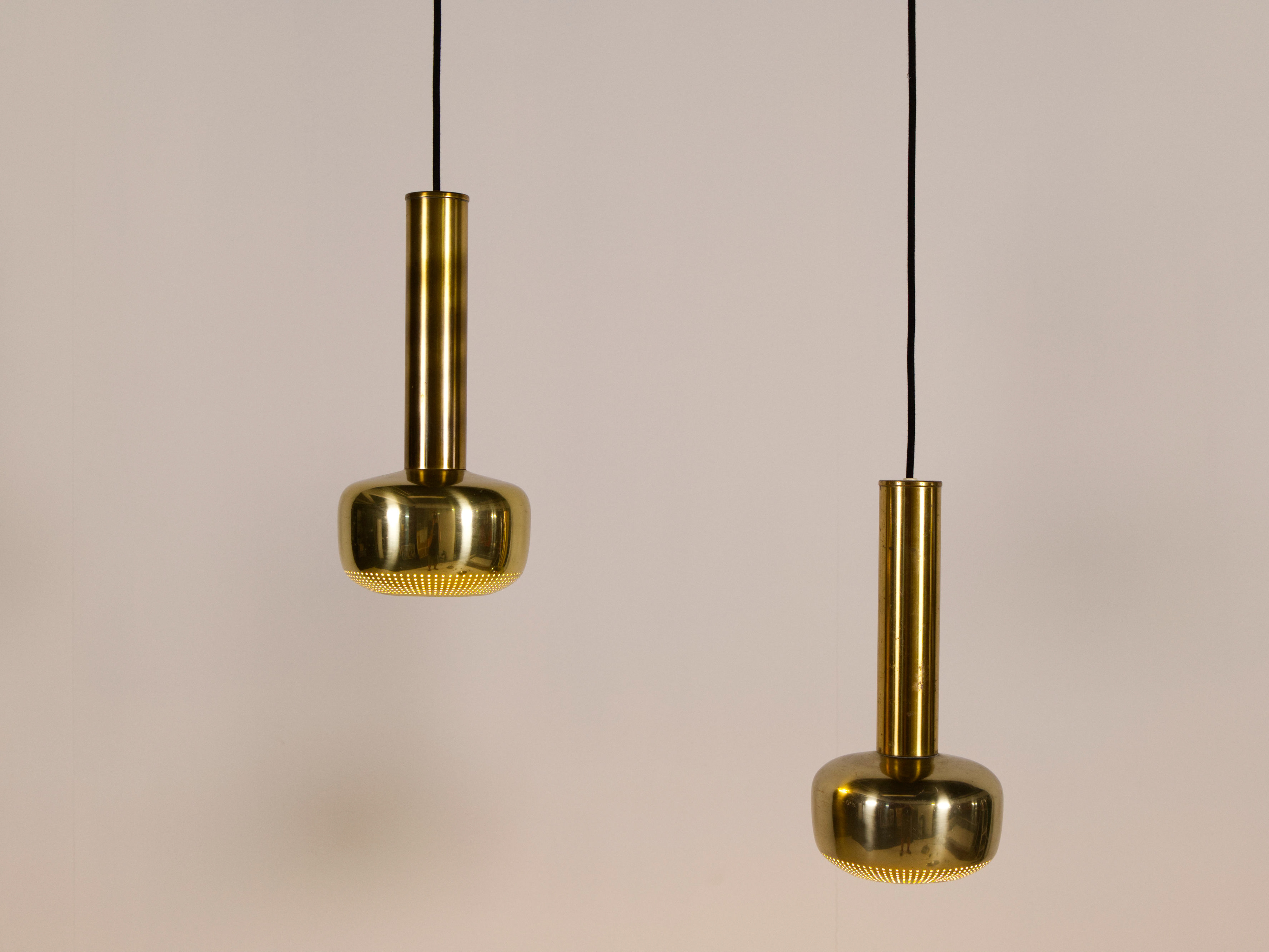 2x Hans Agne Jakobsson Brass Pendant Lamps, Markaryd