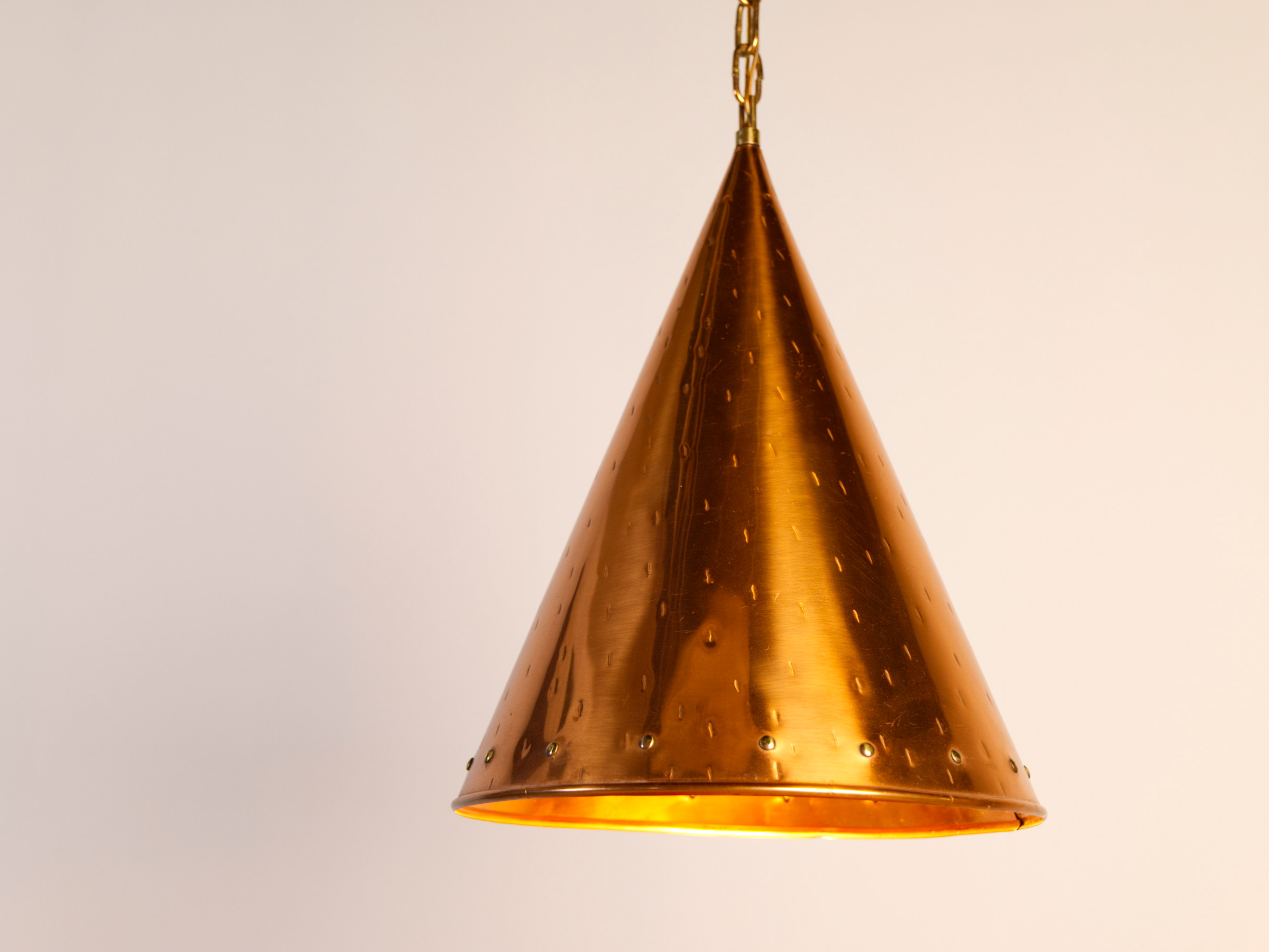 Large Copper Cone Pendant Lamp by Th. Valentiner