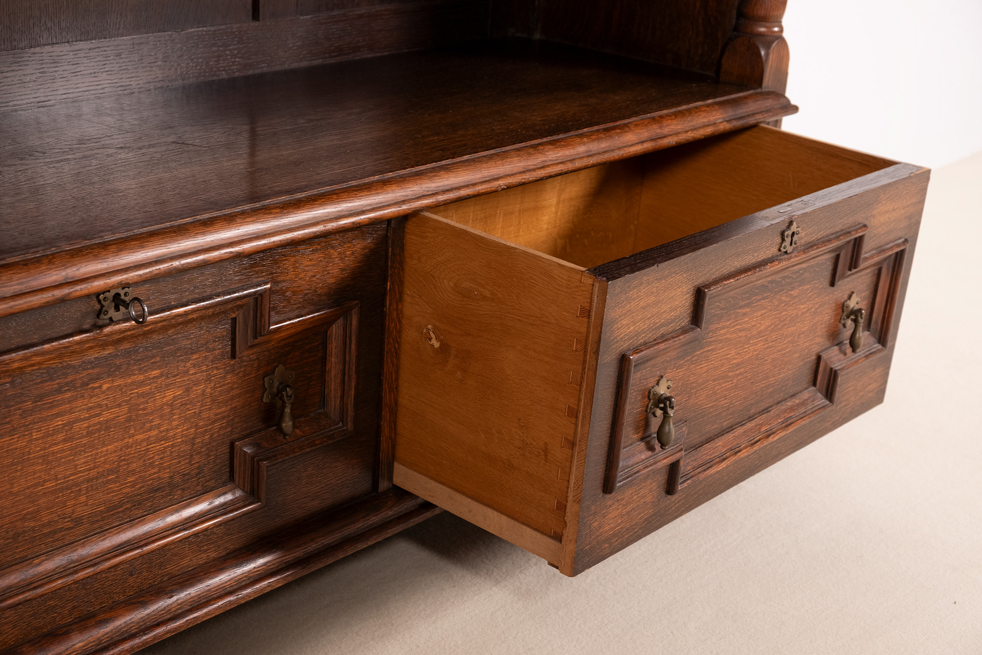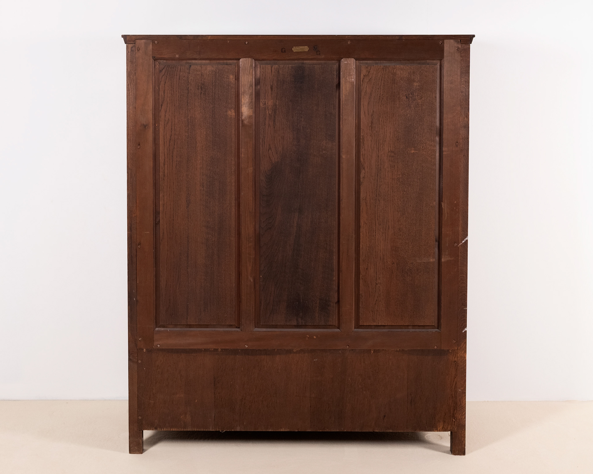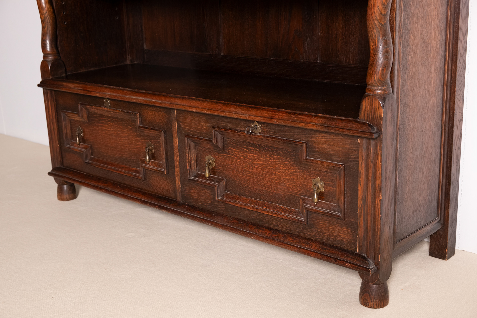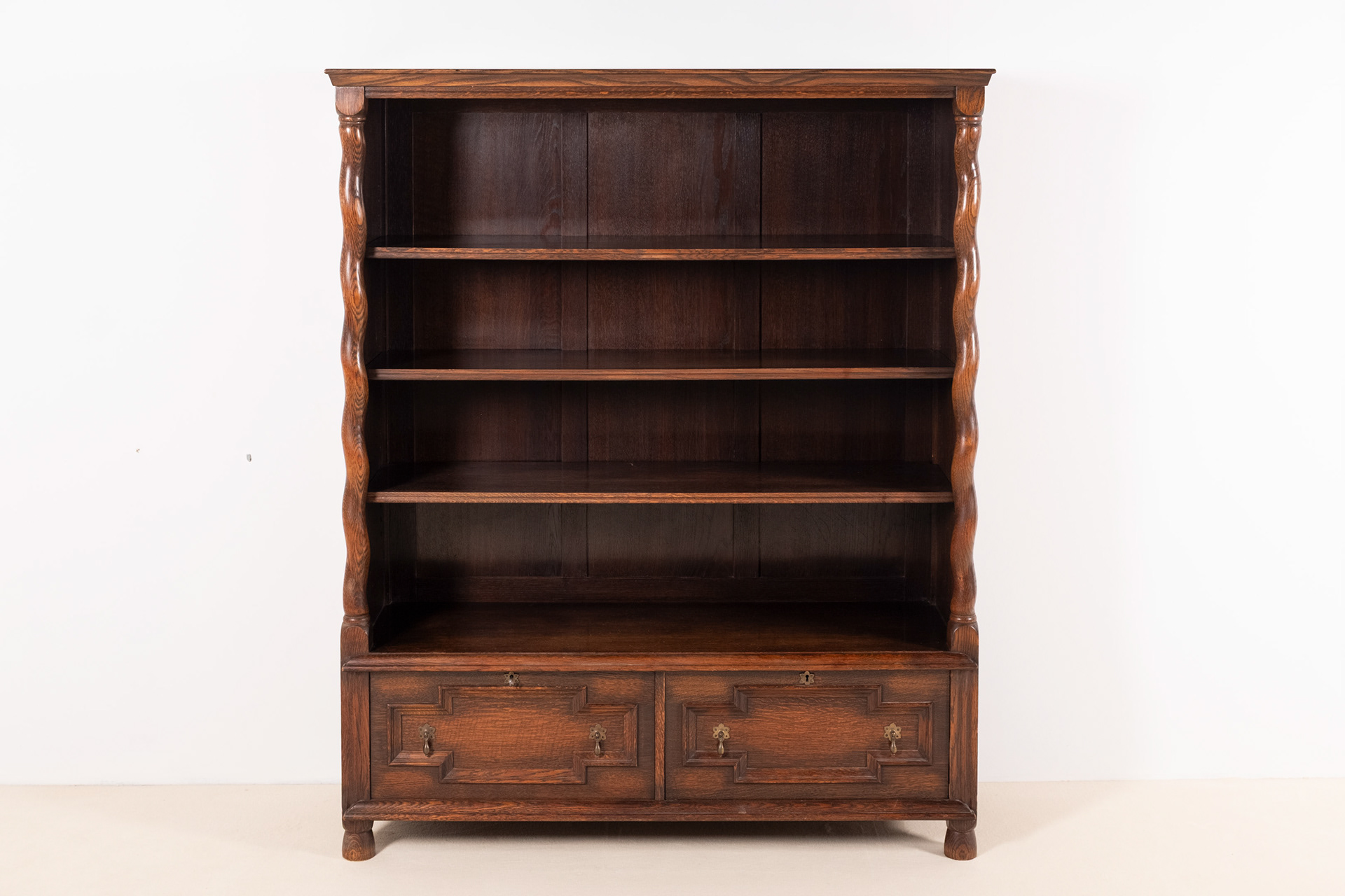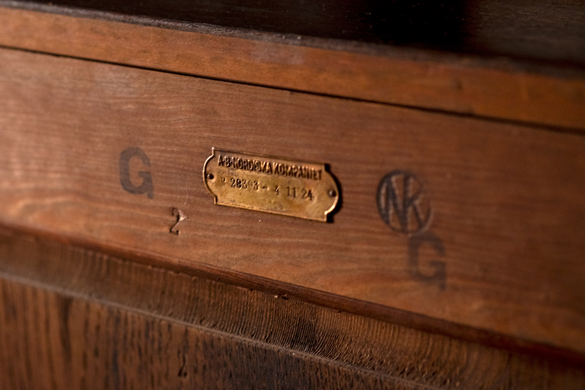 Crafted in 1924 by Nordiska Kompaniet in Sweden, the Gillberga oak bookcase reflects the refined craftsmanship and restrained elegance of early 20th-century Swedish design. Constructed from solid oak, it features three adjustable shelves for flexible storage, complemented by a lockable pull-out drawer and an enclosed cabinet section below. Balancing functionality with quiet sophistication, Gillberga embodies NK’s tradition of durable materials, thoughtful detailing, Normal traces of use for its age, some light discoloration on the top of the bookcase. Key is included.