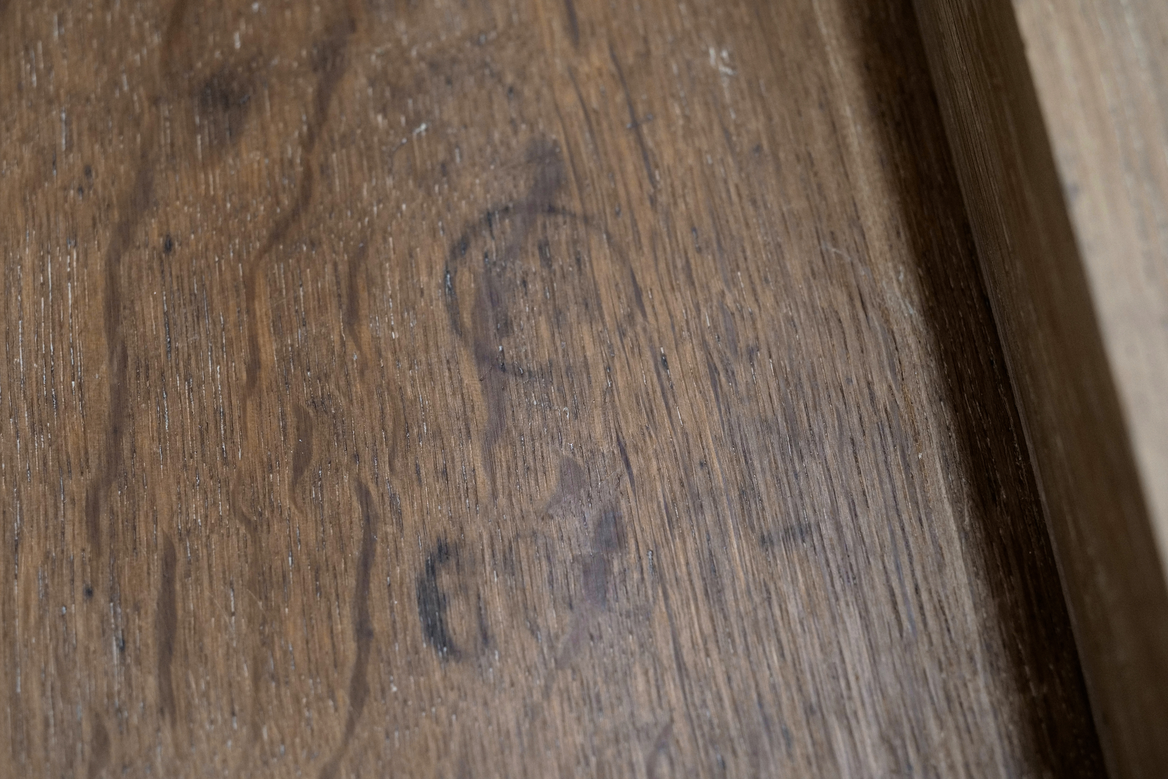 Solid oak sidetable made by Fritz Hansen (marked by maker FH, 6067-). Beautifully elegant design by a designer unknown to us. Trapezium shaped top with round tapered legs connected by thin rectangular stretchers. Fully restored and finished in a natural soap finish. Top has some light bowing due natural wood movement and a small dip by a previous owner that sanded to deep. Overall in good original condition with label from maker. Next to the above remarks all other signs of use and wear according to the age.