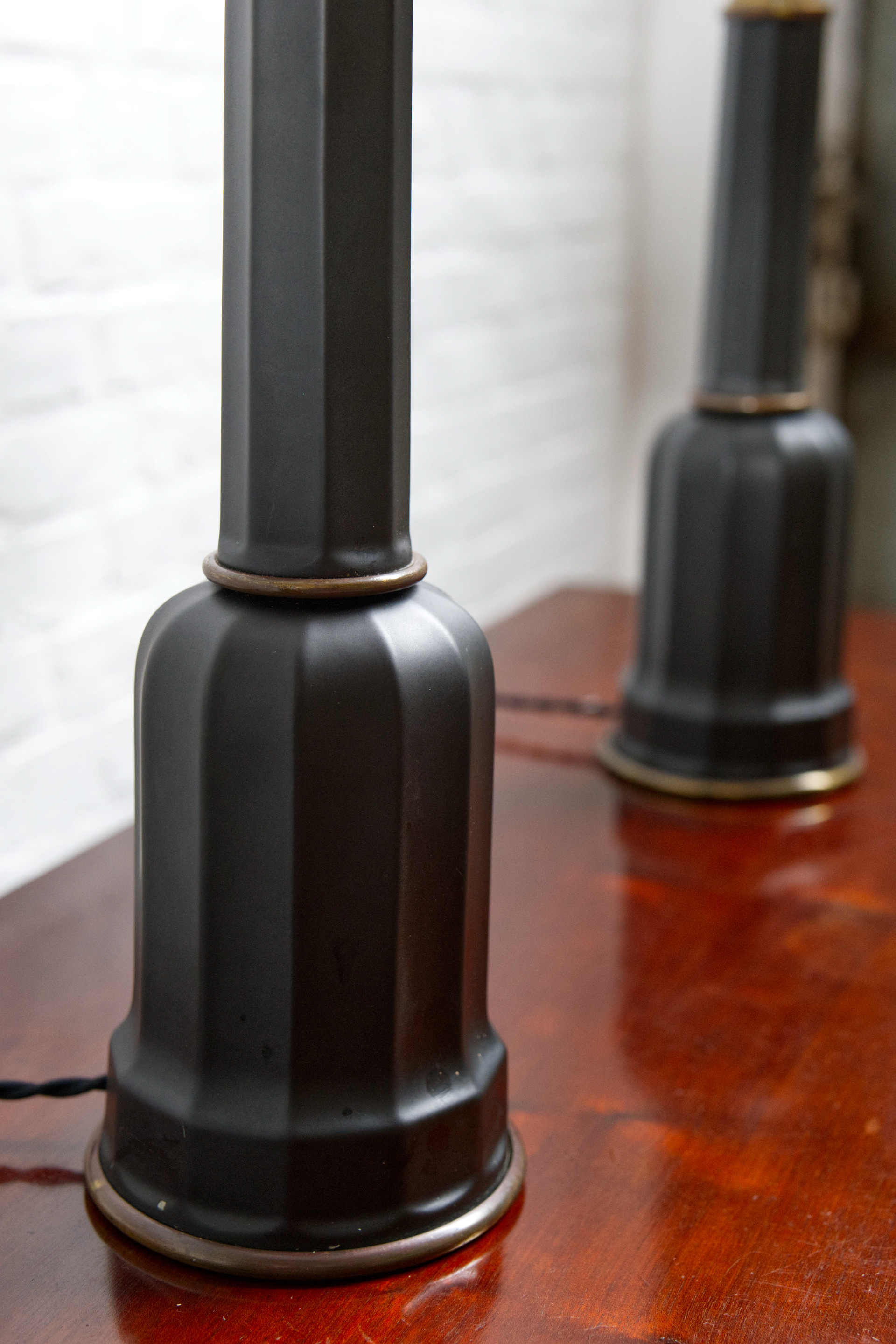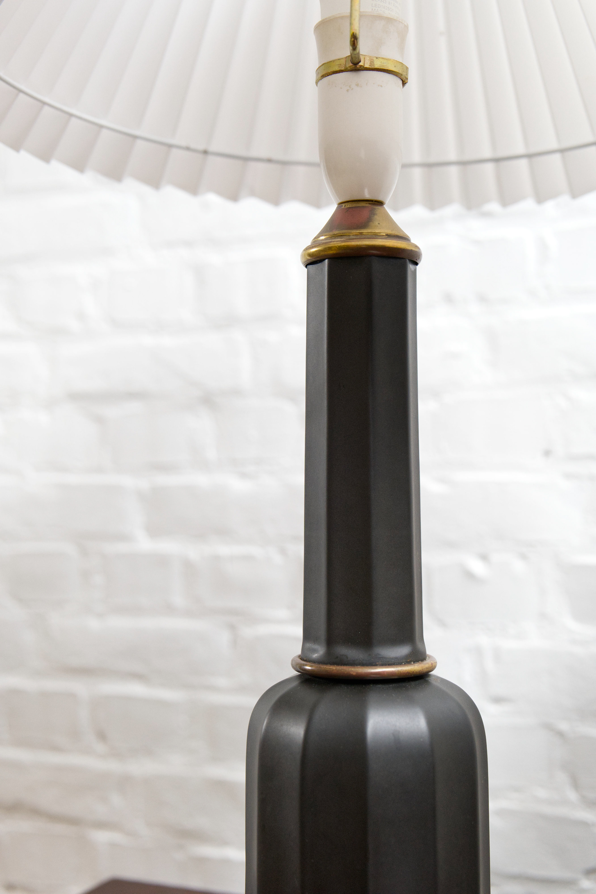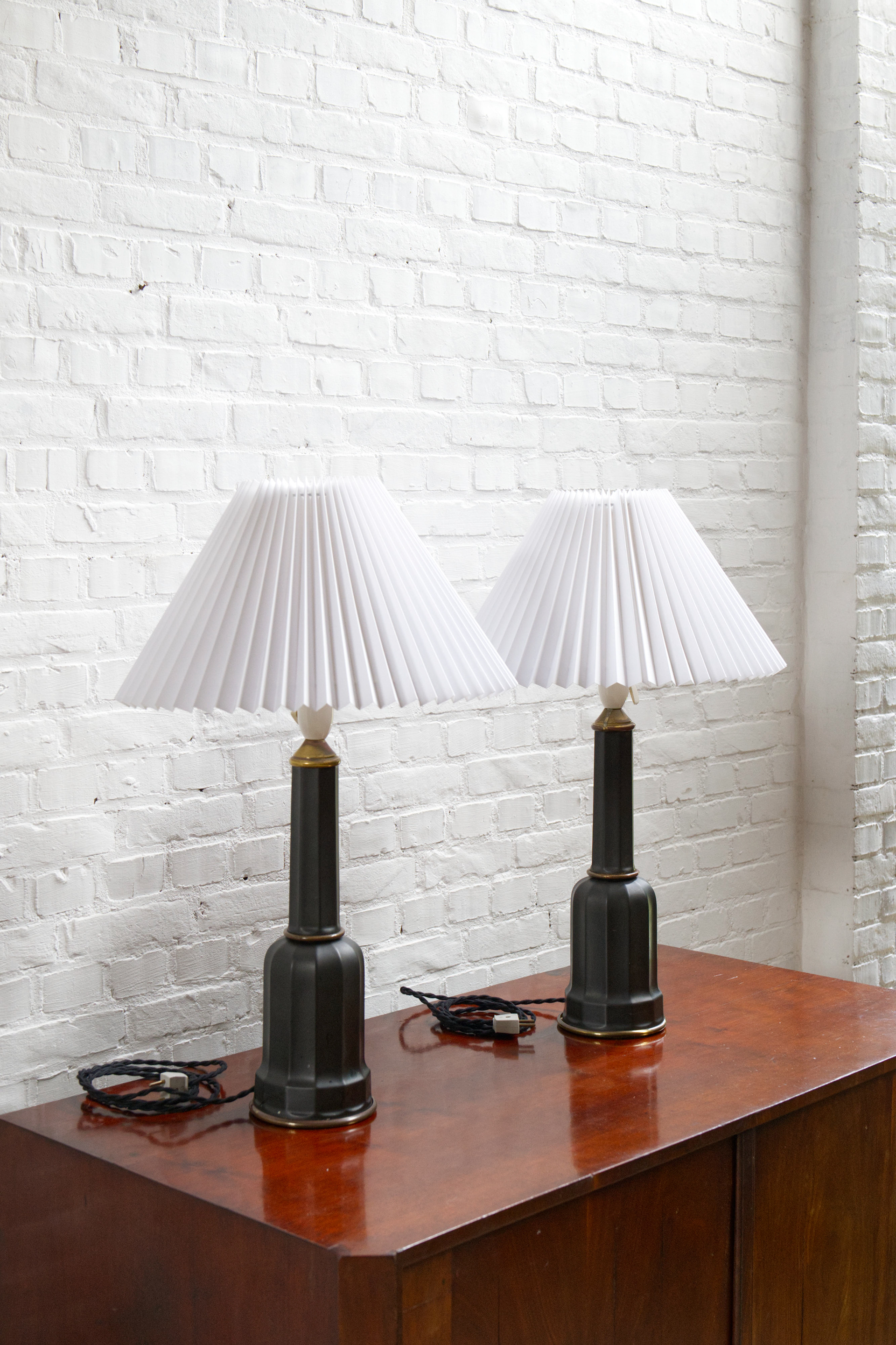 Pair of black porcelain and brass 'Heiberg' table lamps, Denmark, 1930's