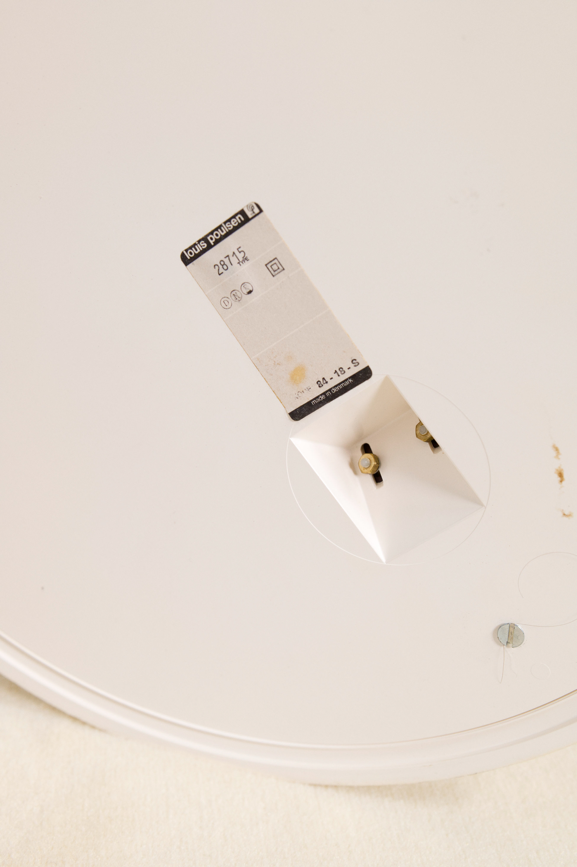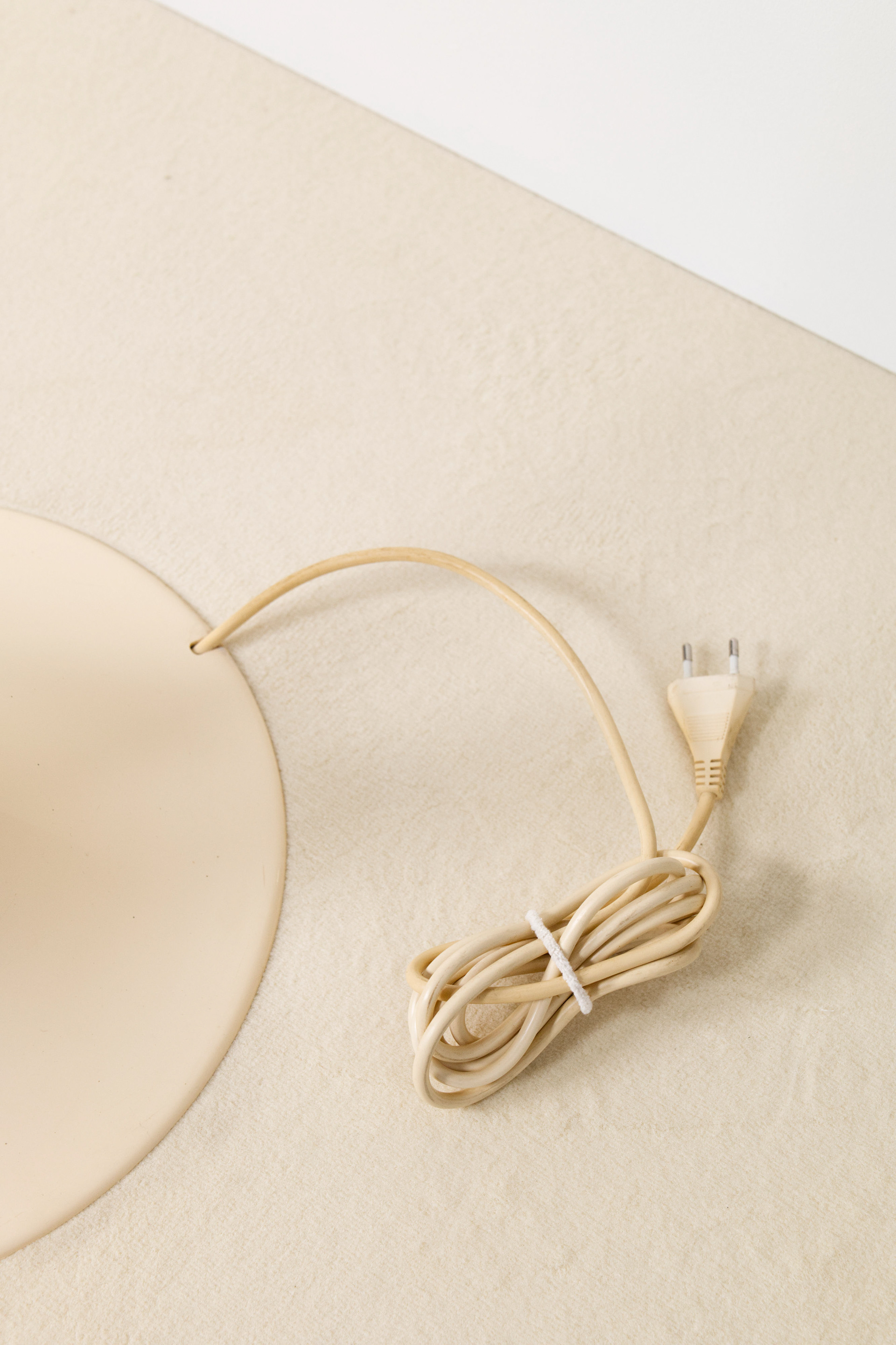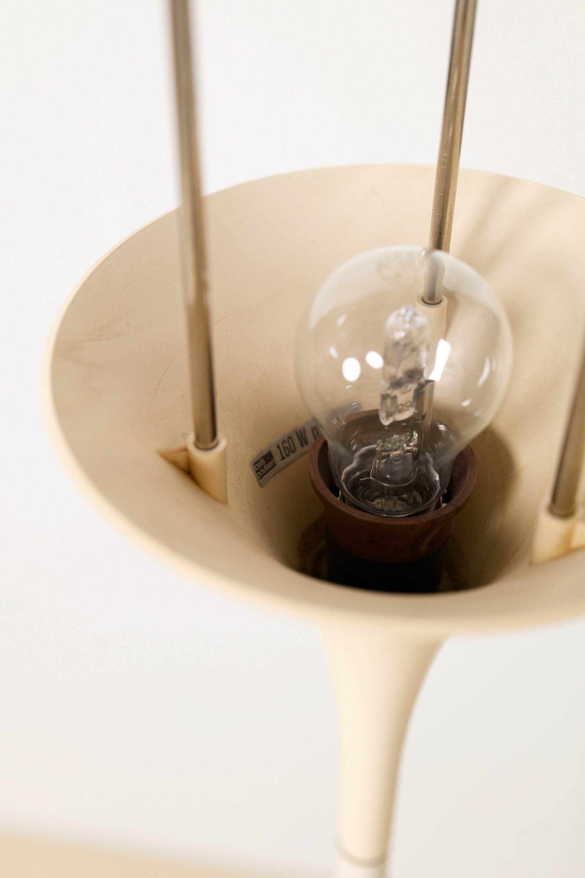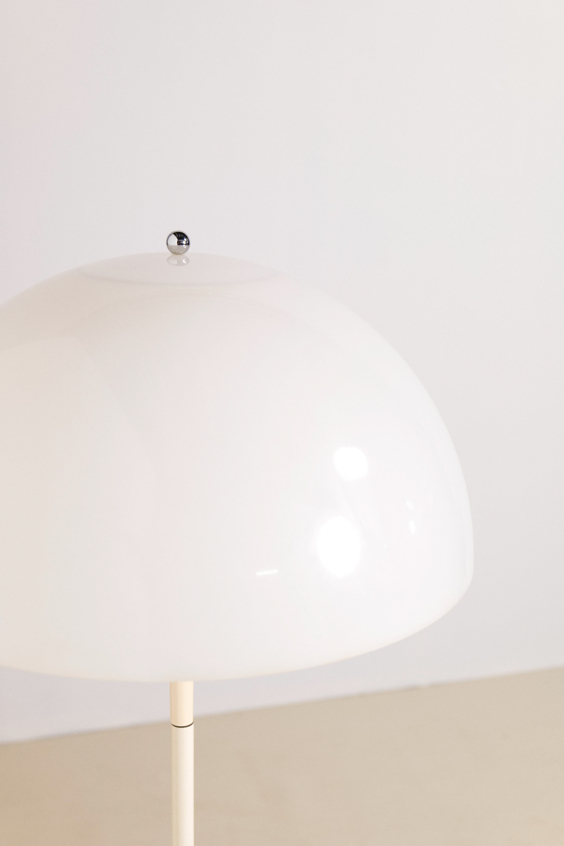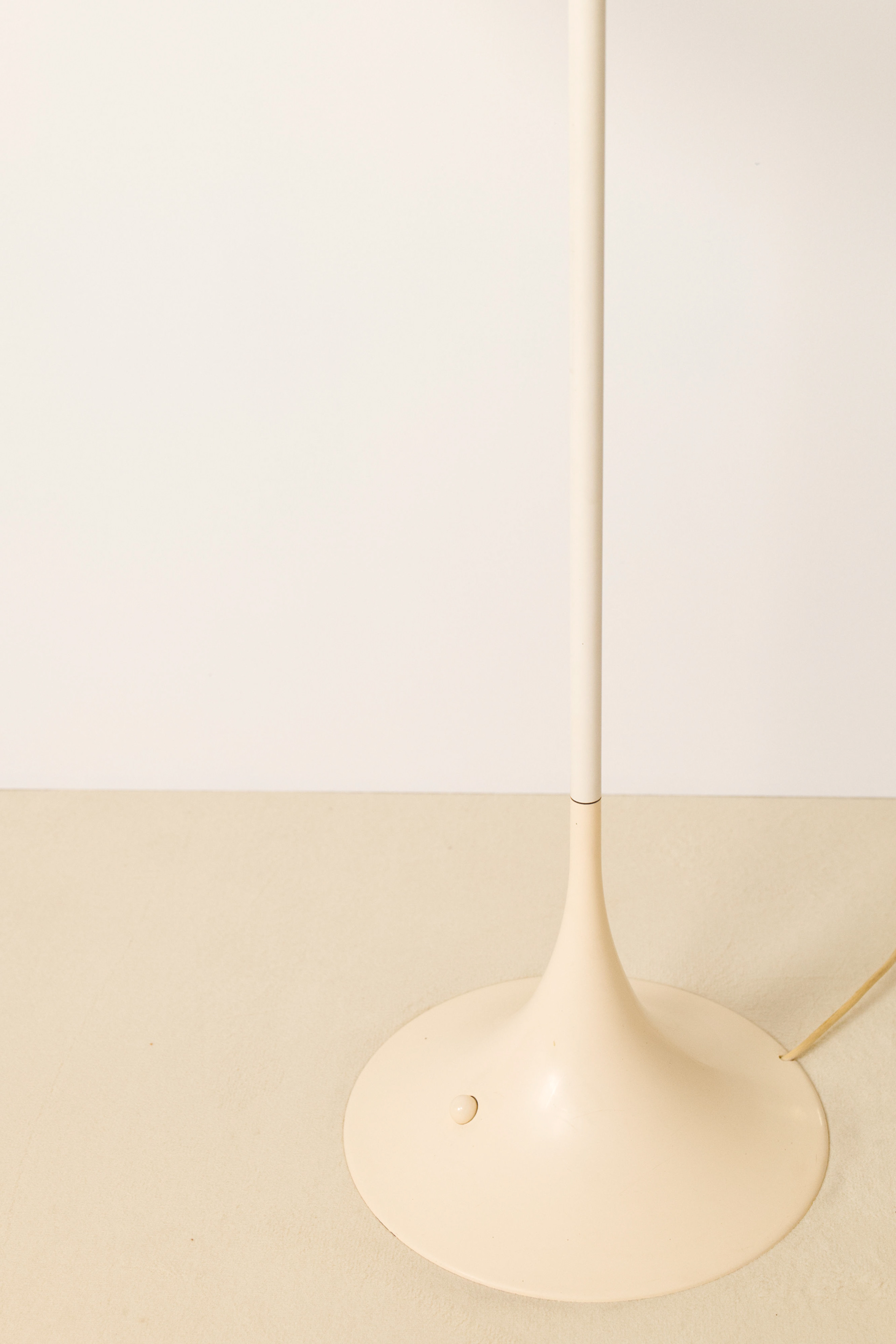 Vintage Panthella floor lamp designed by Verner Panton, produced by Louis Poulsen in 1984. Features the iconic organically curved ABS base and white acrylic dome shade, designed to diffuse light softly and evenly. This version includes the original double-click floor switch. Marked and dated on the underside. Good vintage condition with minor signs of age and use. A classic example of Panton’s sculptural lighting design.