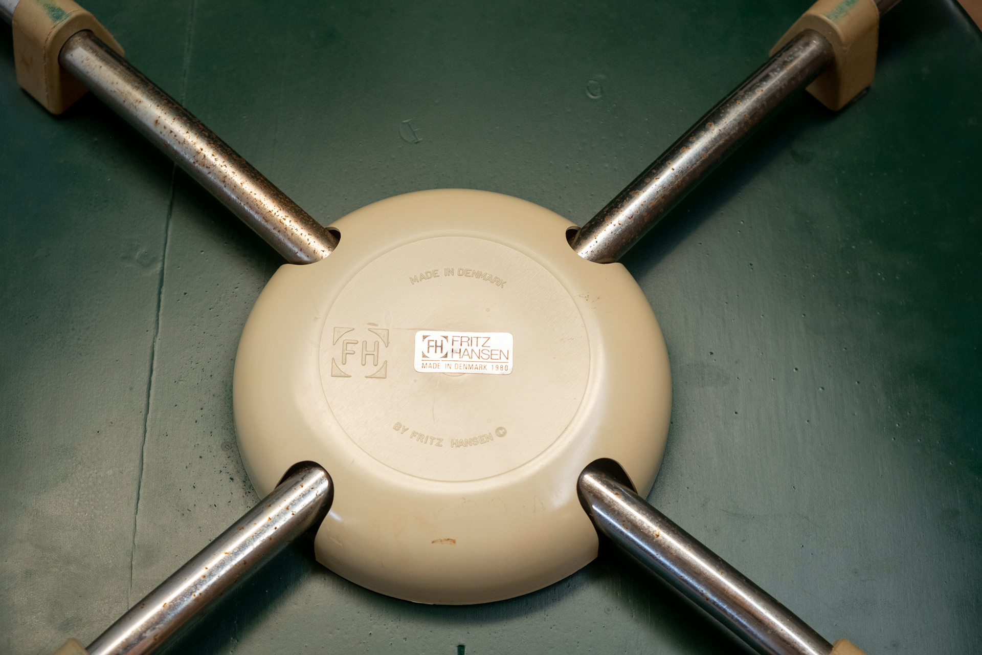 Marked with label from Fritz Hansen and production year.